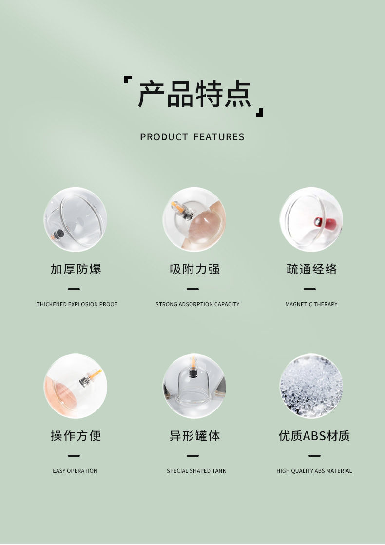 家庭用真空カッピング器具、吸引式経絡健康カッピングセット、中医学磁気療法、厚型カッピング、ギフト