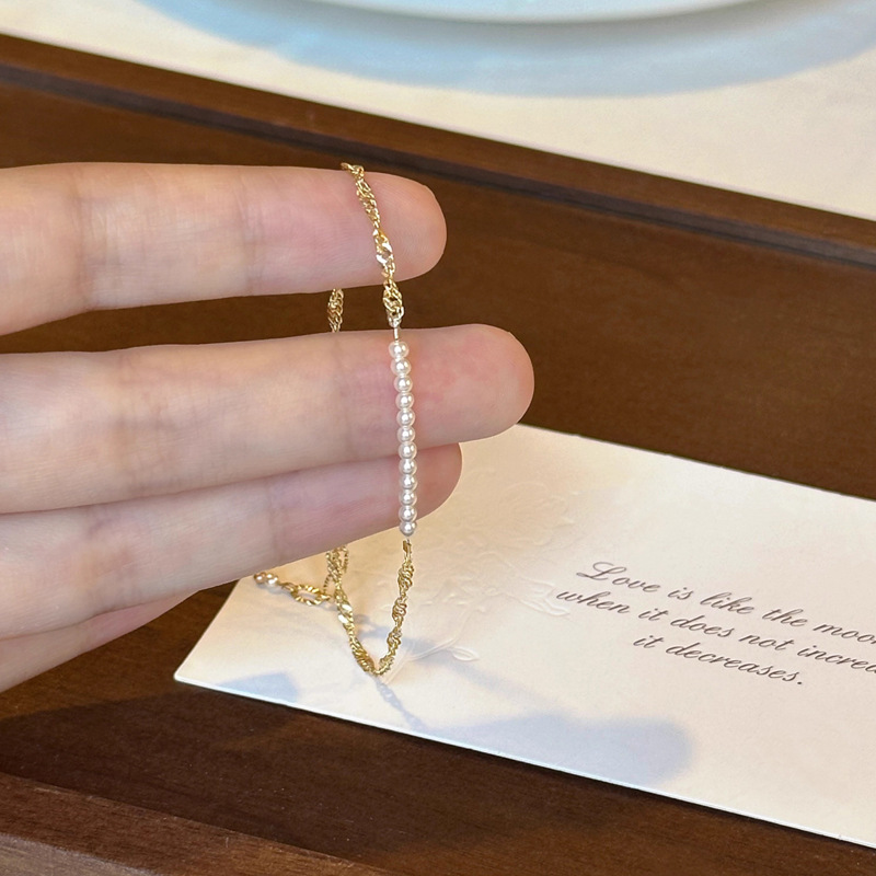 フランスのレトロな極の細い金の玉の強い光の真珠のブレスレットの女性の項の軽くて豪華な大衆のフランスの気質の高級感の手の串