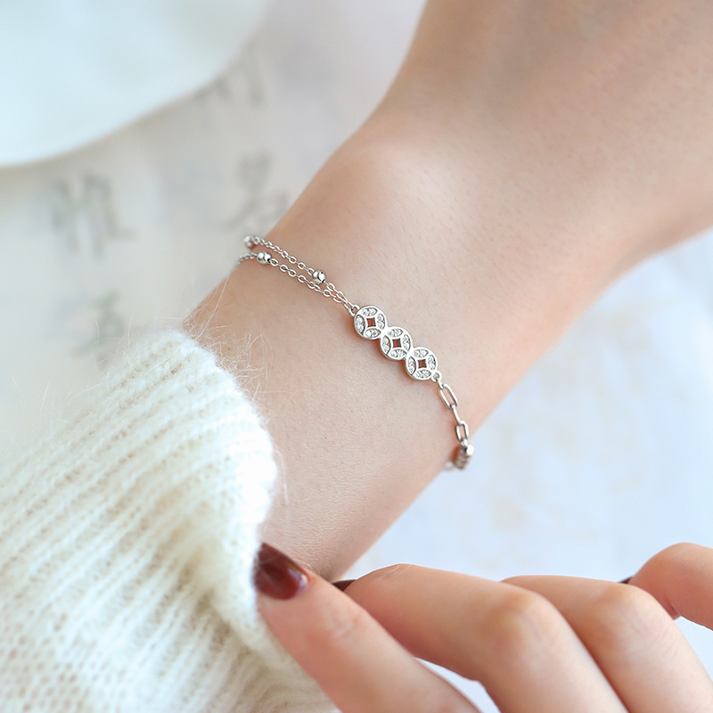 925銀メッキ銅銭ブレスレット女性小衆兎年閨蜜ブレスレット軽豪華手飾り本命年秋冬