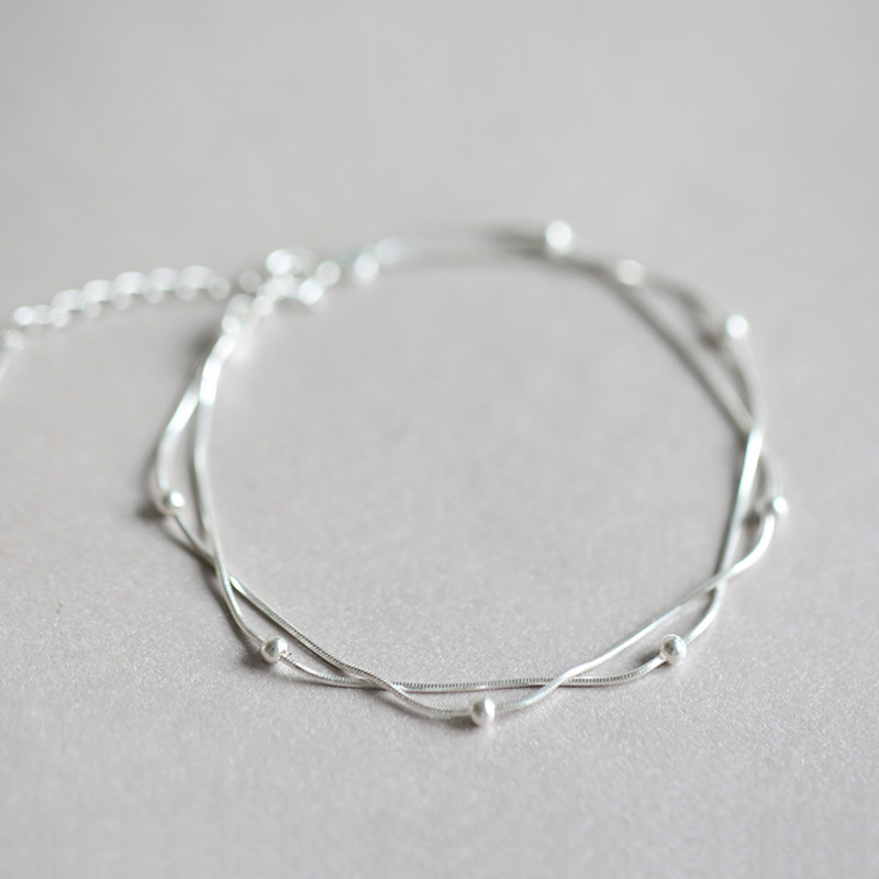 925銀メッキ平たい蛇の骨のチェーンの二重のブレスレットの女性の手の装飾の個性は簡単です。