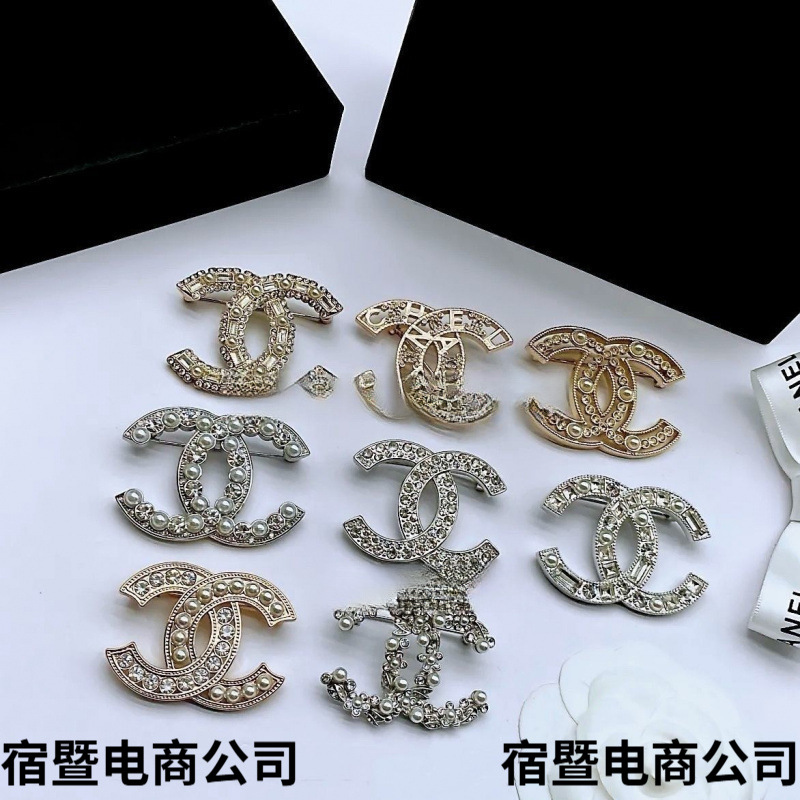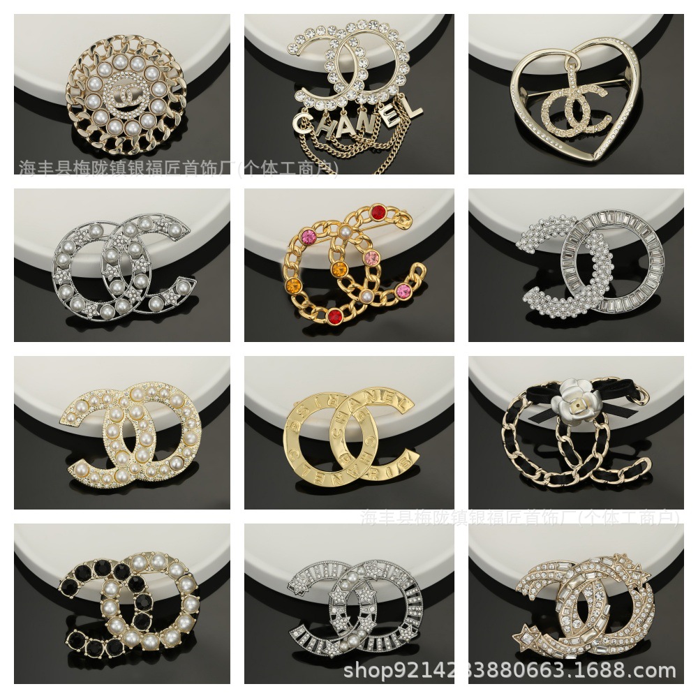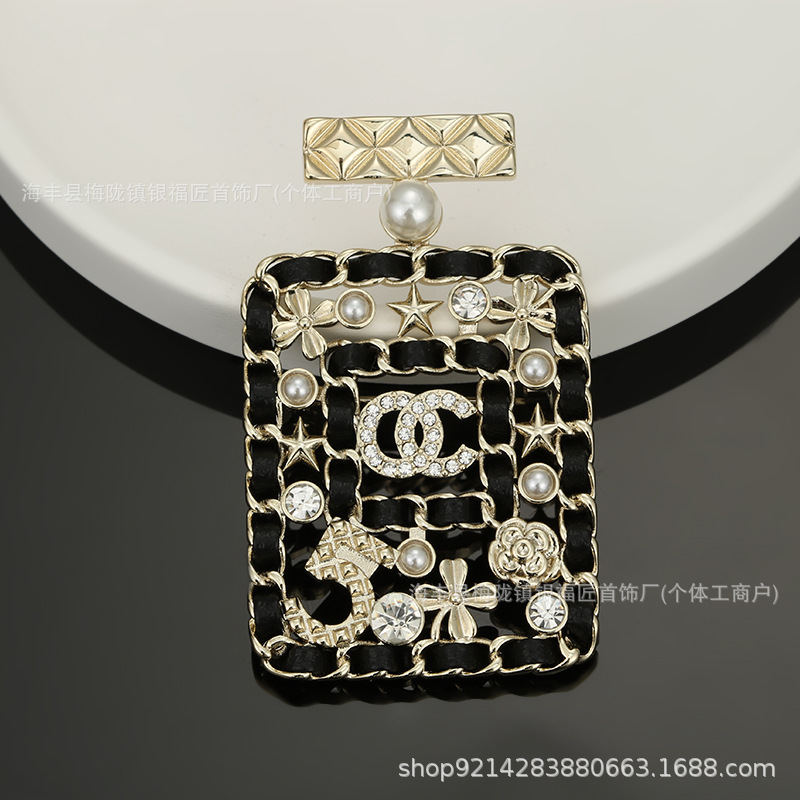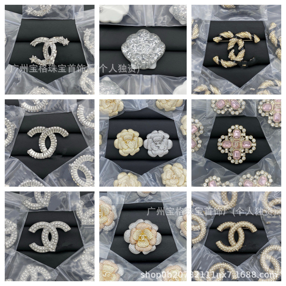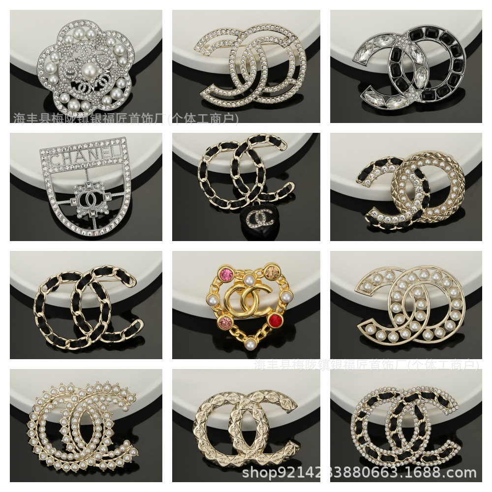 香家ダブルCフルダイヤモンド中空ブローチ、スクエアダイヤモンドパールピン、香奶奶椿花胸飾り、欧米風ダブルCデザイン