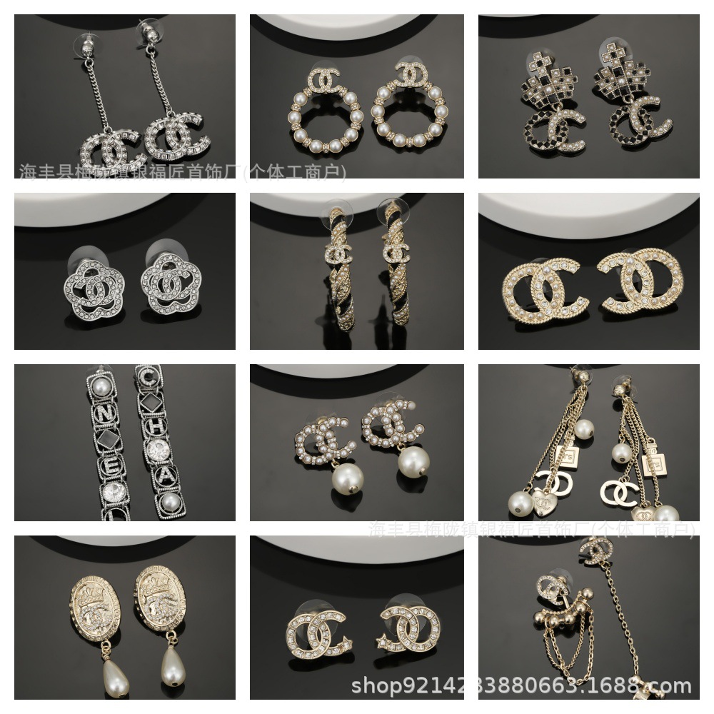 香家ダブルCフルダイヤモンドパールフリンジイヤリング女性用香奶奶ins万能イヤリング工場卸売絶妙な小香風