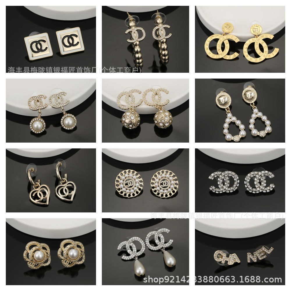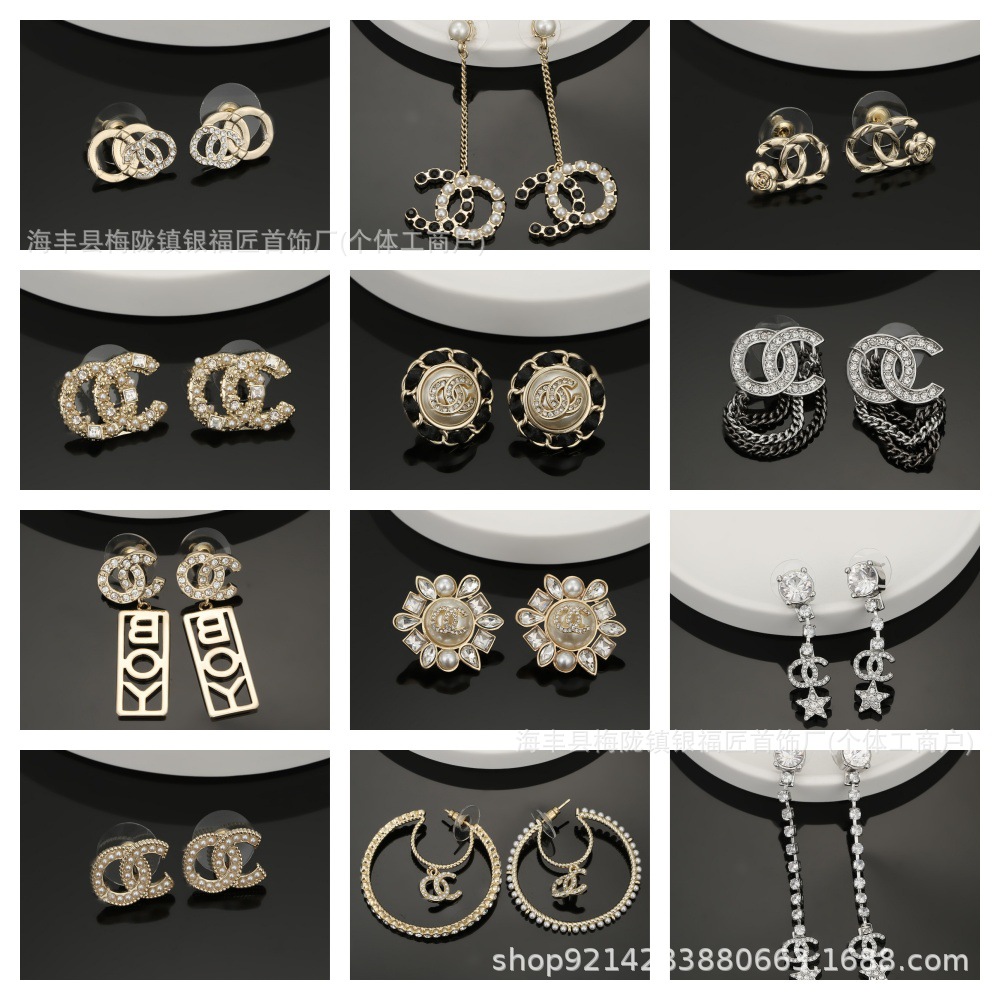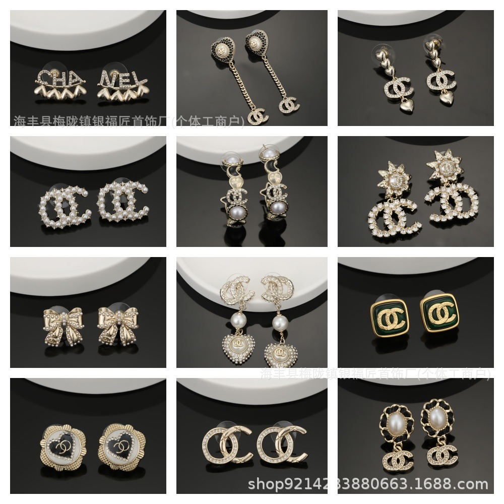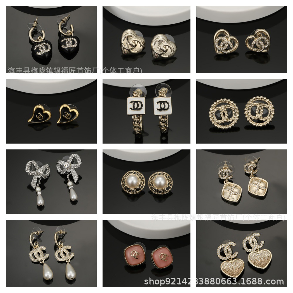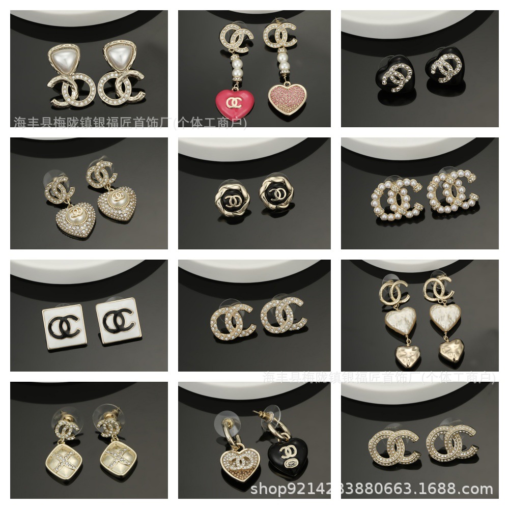 香家ダイヤモンド付きダブルCイヤリング、ハート型シャネル風イヤリング、万能な小さめシャネル風イヤリング、女性用春の新作