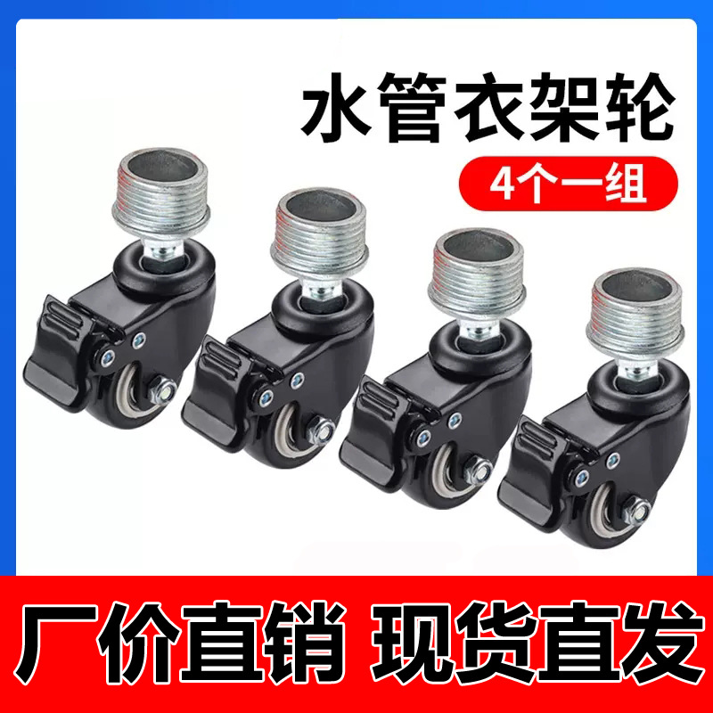 4分6分1インチ物干しハンガーキャスター着地ドライネジユニバーサルホイール3/4水パイプハンガー鉄パイプホイールアクセサリー