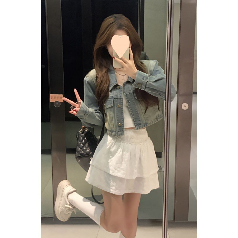 IN6 レトロショートデニムジャケット女性のための 2024 新しいスタイル小人多用途韓国スタイルアウターウェア春ジャケット小