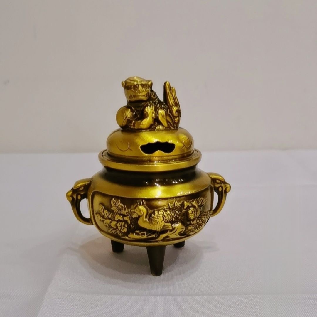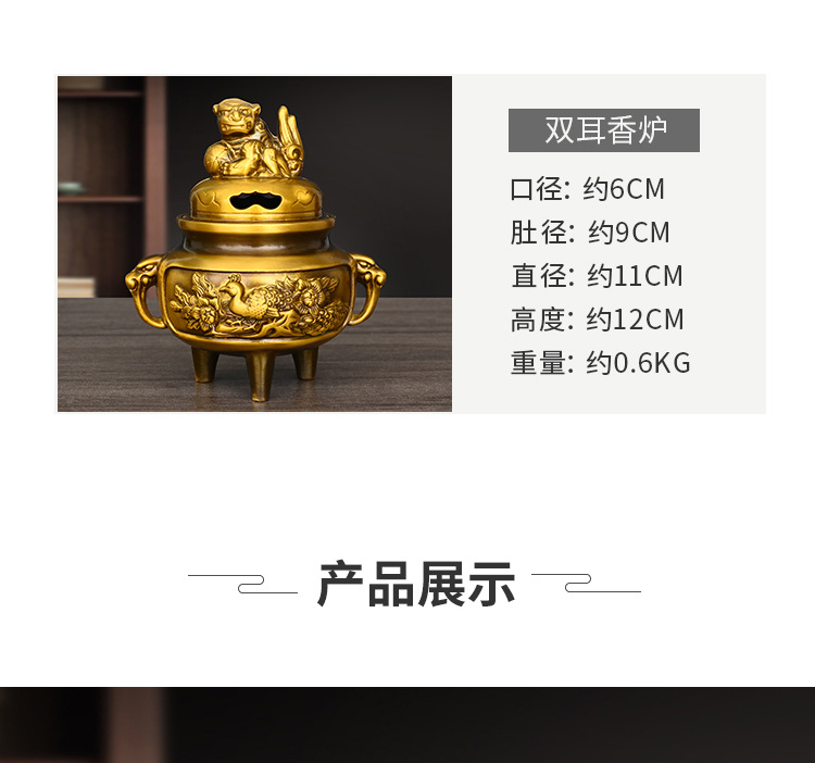 真鍮双耳香炉三脚オープン蓋香炉書斎オフィス香炉デスクトップ装飾品香炉 T