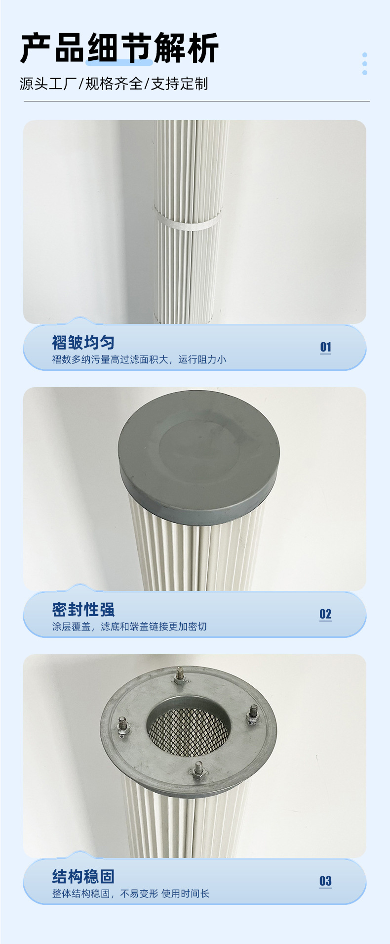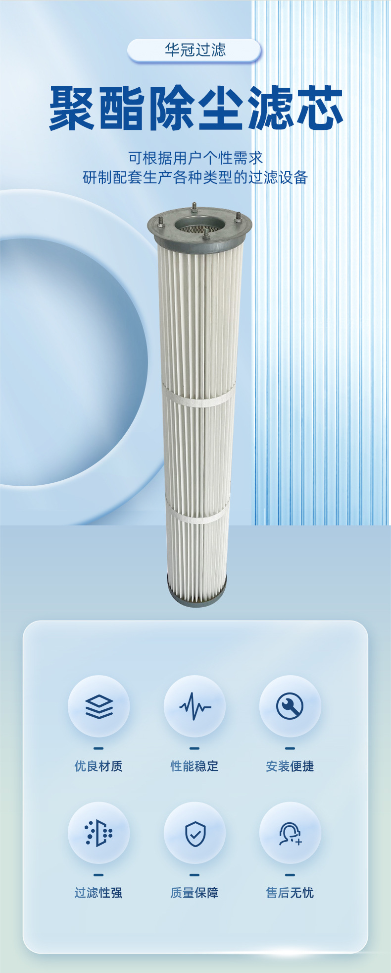 ポリエステル繊維フィルター筒に除塵フィルター筒ダストフィルターを取り付けた難燃性膜フィルター筒折り畳み除塵フィルター
