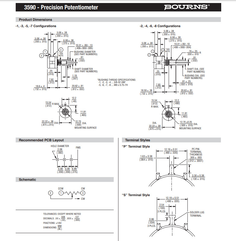 BOURNS精密多回転コイルポテンショメータ3590S-2-103L 503l 1K 2K 5K 10K 100K