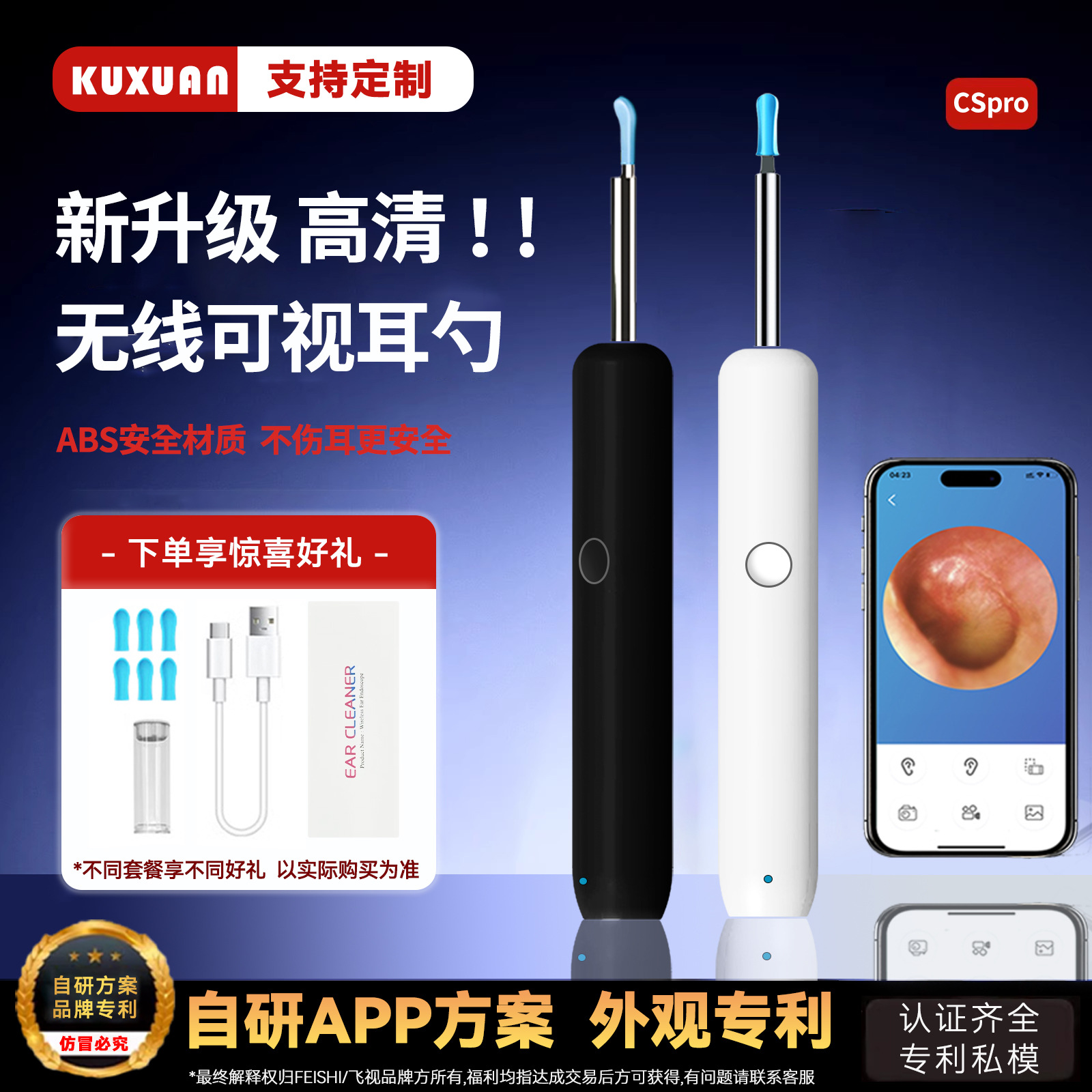 新款可视挖耳勺内窥镜高清智能儿童发光掏耳采耳WIFI智能