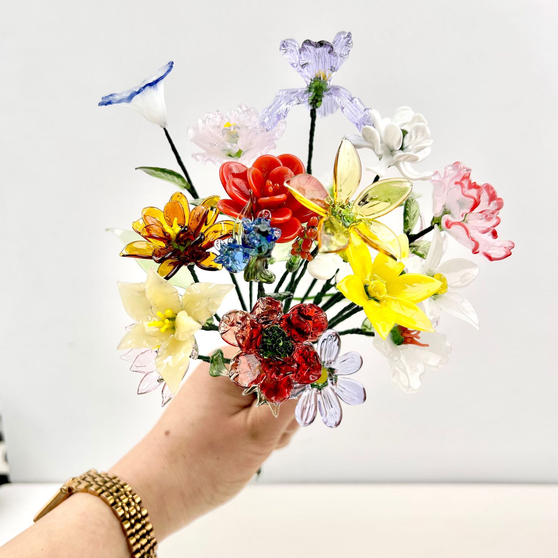 シ博の手作り瑠璃の小さい花のシミュレーションの花束の生け花のガラスの永遠の花の贈り物の清新なデスクトップの装飾の置物
