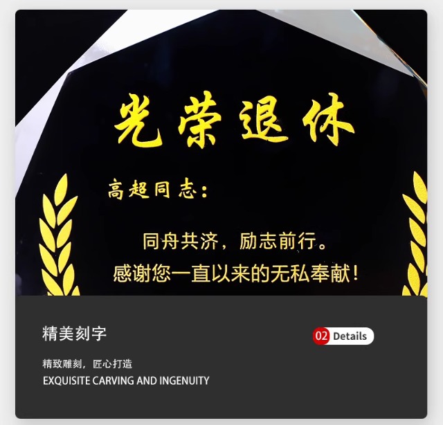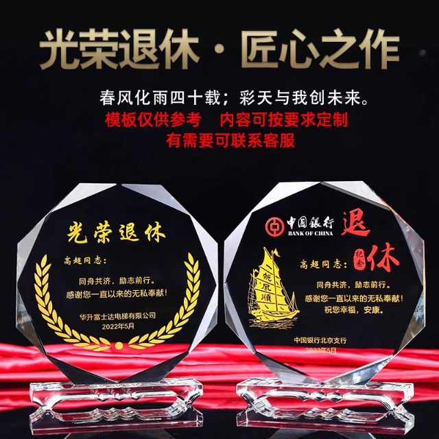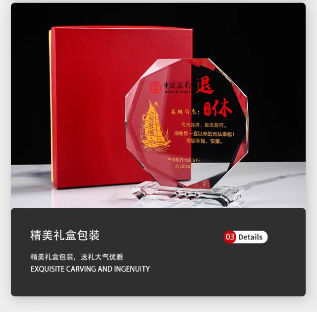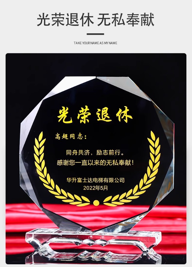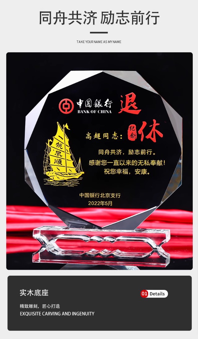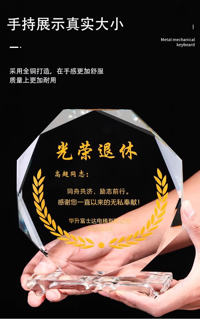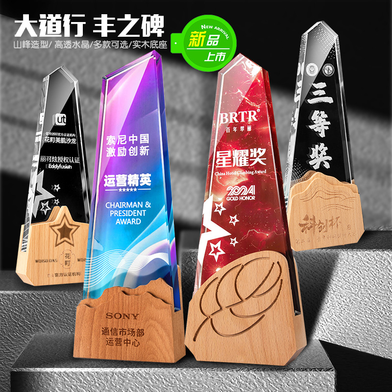 実木水晶トロフィーカスタム制作授賞光栄退職栄誉授賞優秀社員高級大気創意