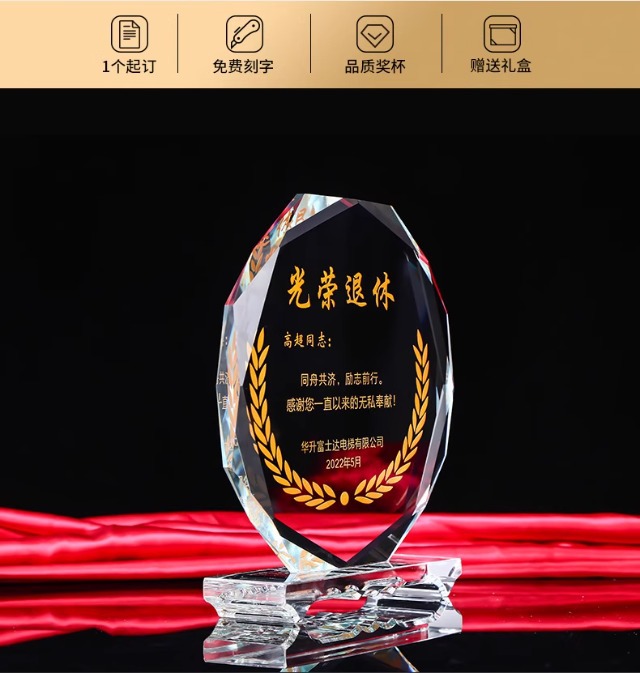 水晶トロフィー制作高級瑠璃彫刻優秀社員活動授賞光栄退職年会トロフィー卸売り