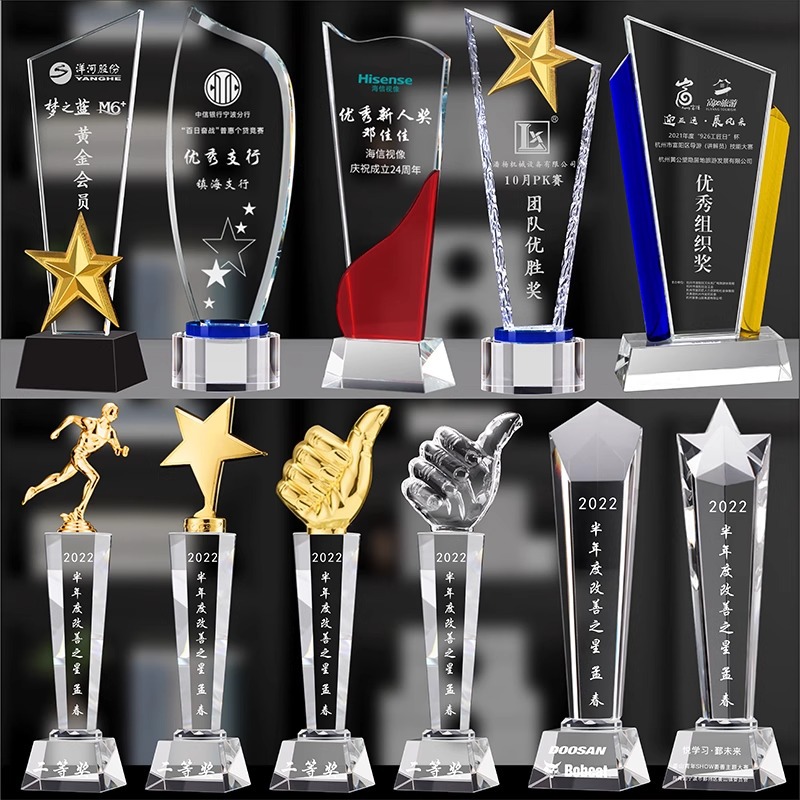 クリスタルトロフィーカスタムクリエイティブ優秀社員光栄退職記念品運動会メダル試合トロフィー卸売り