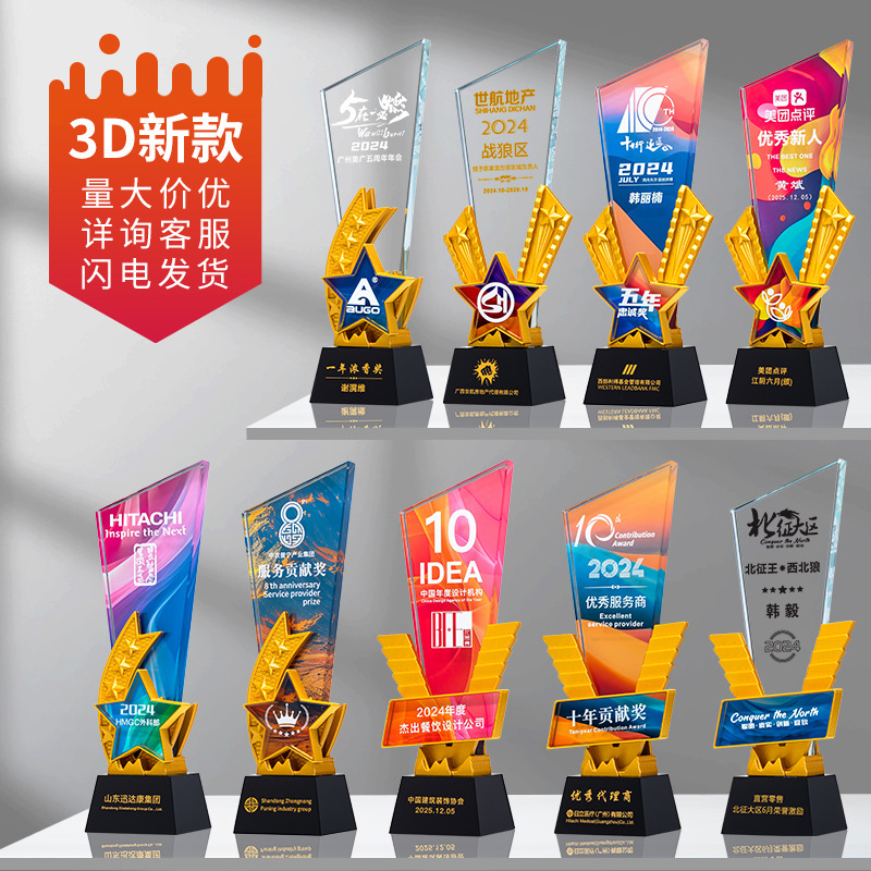 2025新型水晶トロフィーカスタム3dプリント創意凱旋五星会社優秀社員授賞オーダー