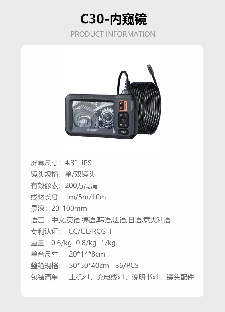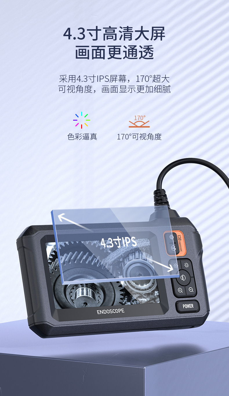 ライト検査穴付き内視鏡カメラ 4.3インチ