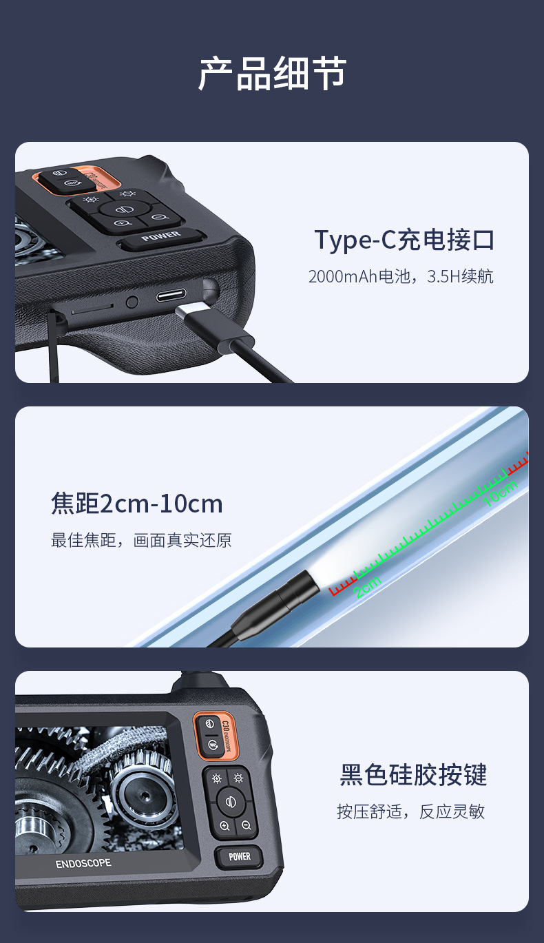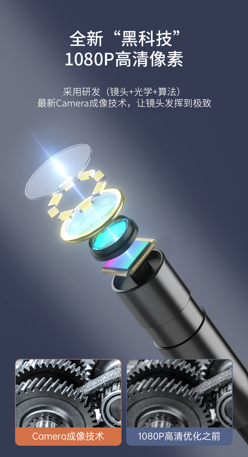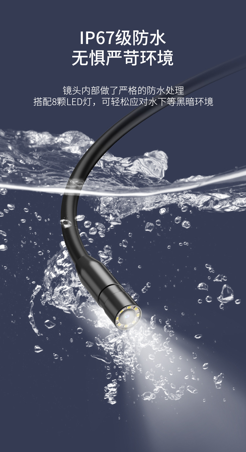 跨境爆款工业内窥镜管道高清带屏手持摄像头手机汽修检测工厂批发