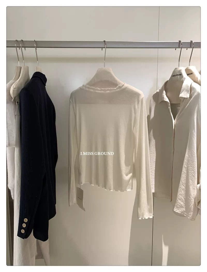 杭州四季青高級女装2025春日焼け止めエアコンブラウス木耳元長袖tシャツ底上着