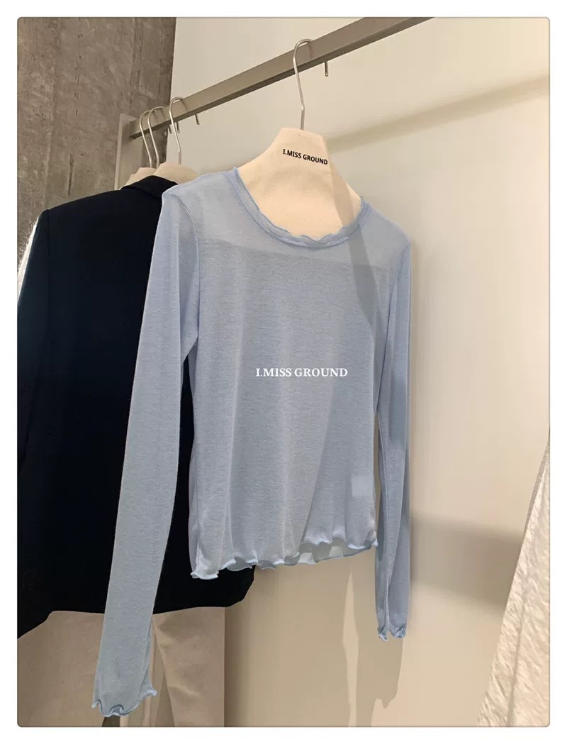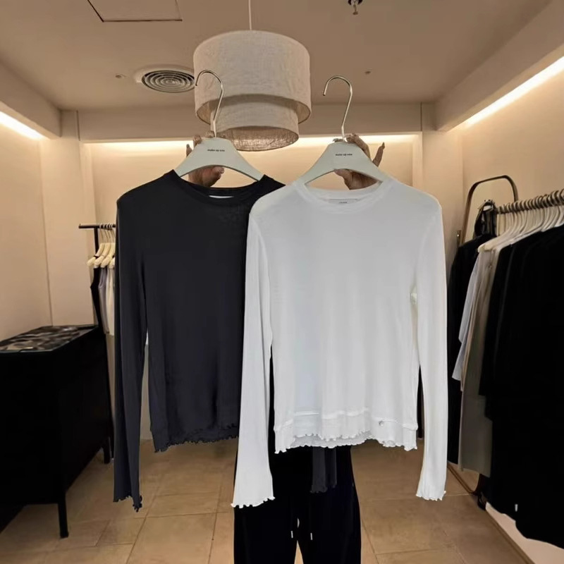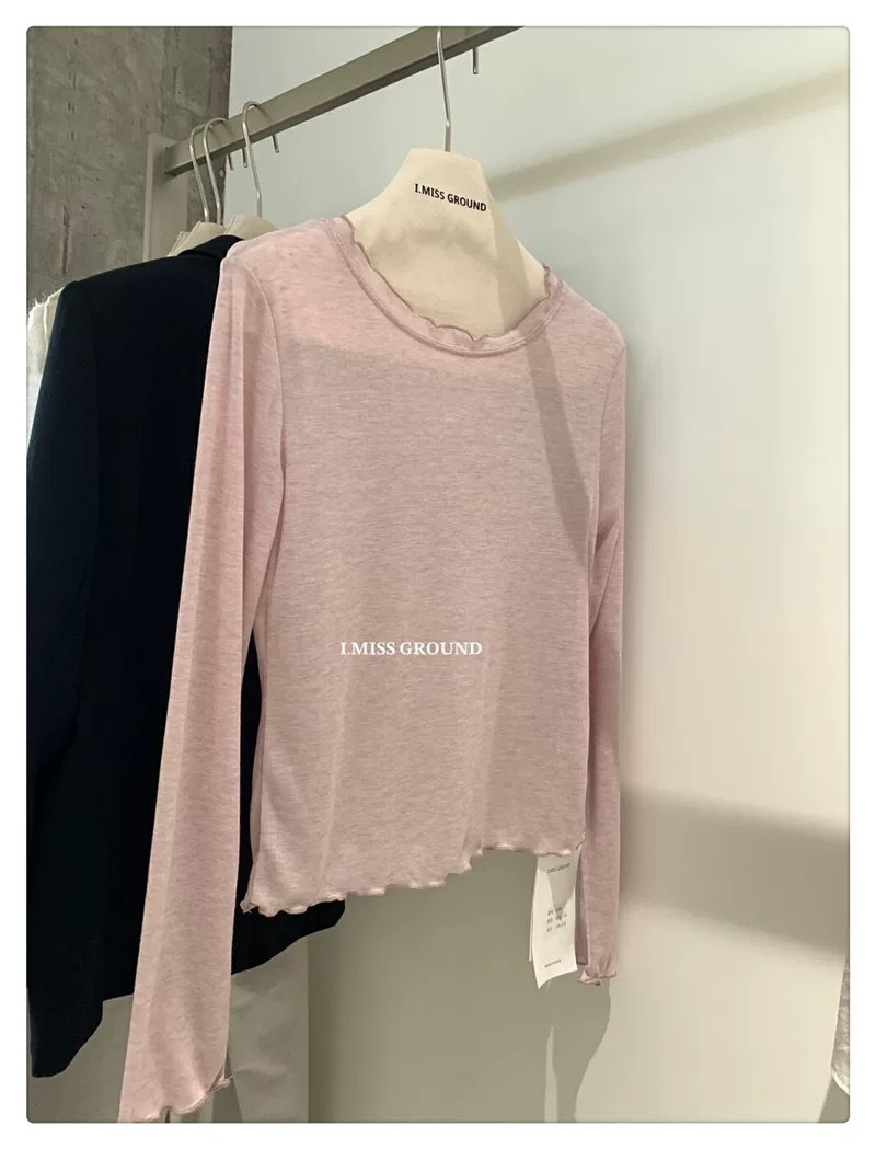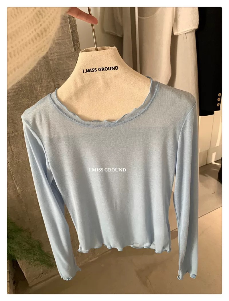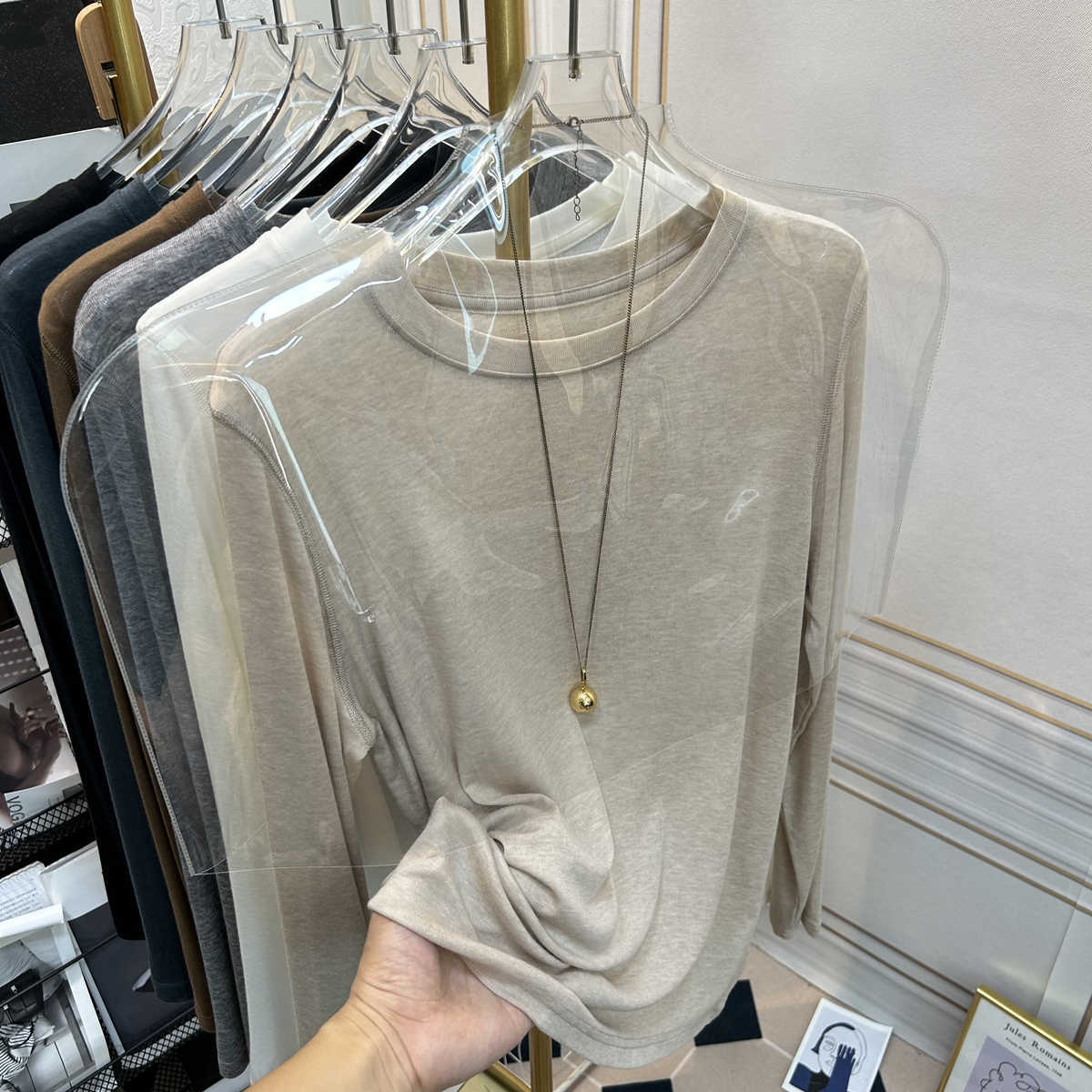 韓国の2025春の新型シンプルな小衆の貝の殻は身を修める底のシャツの長袖のtシャツの女性の天糸の上着を掛けます。