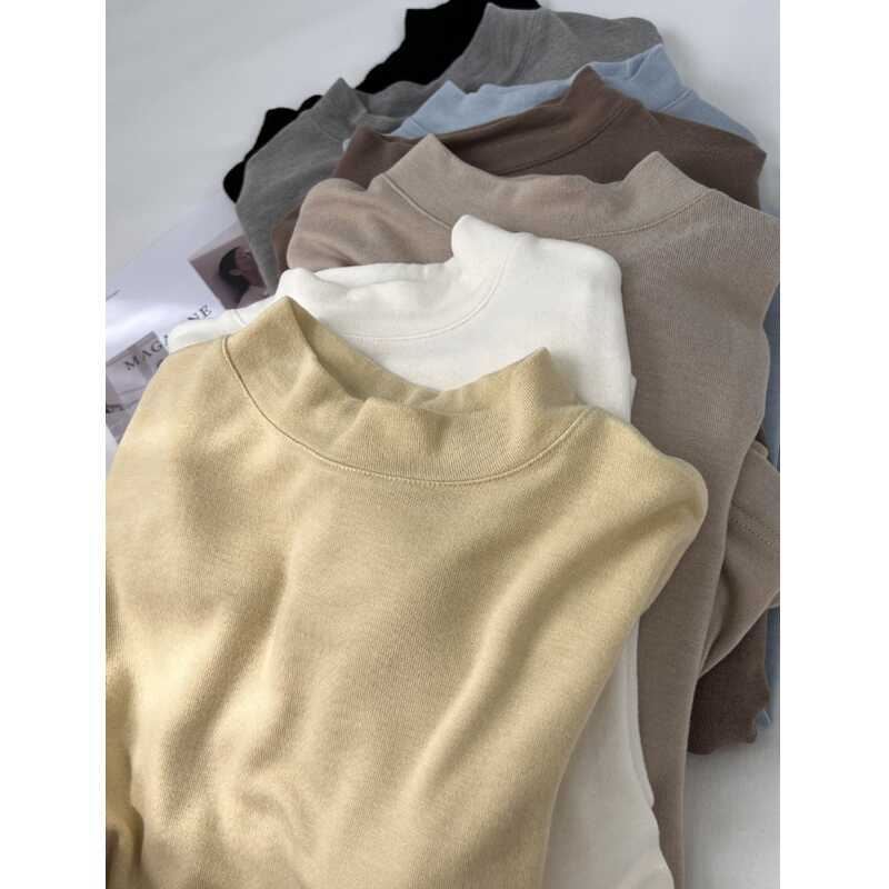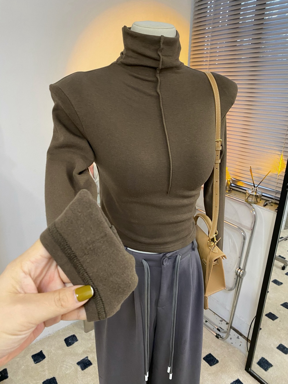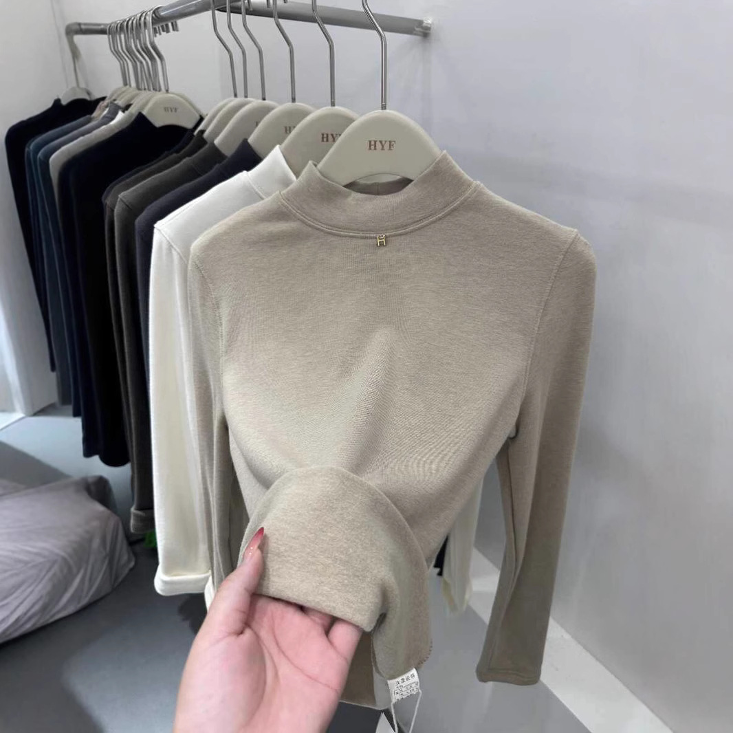 欧冪弾力純色シンプル保温半高襟女性2024秋冬底シャツに長袖上着とベルベットをかける