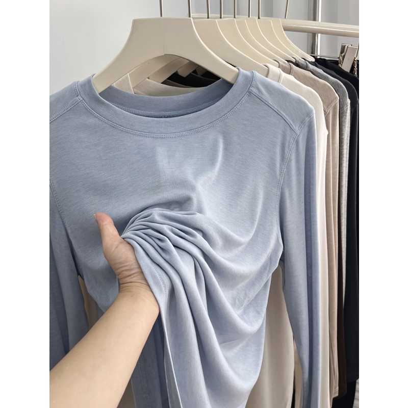 アウトレット ~ 柔らかいモチモチ丸首ウール天糸マスク長袖tシャツ女性2025春秋新作修身シャツ