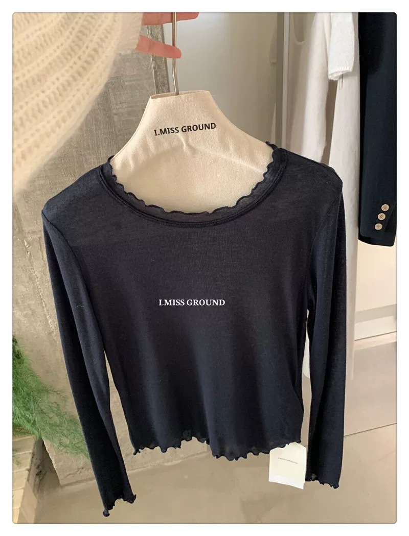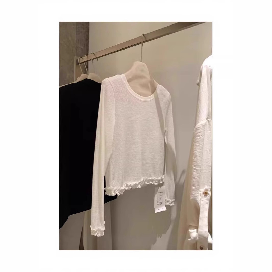 2025新款春秋韩版ins通勤白色内搭打底衫小个子别致花边长袖t恤女