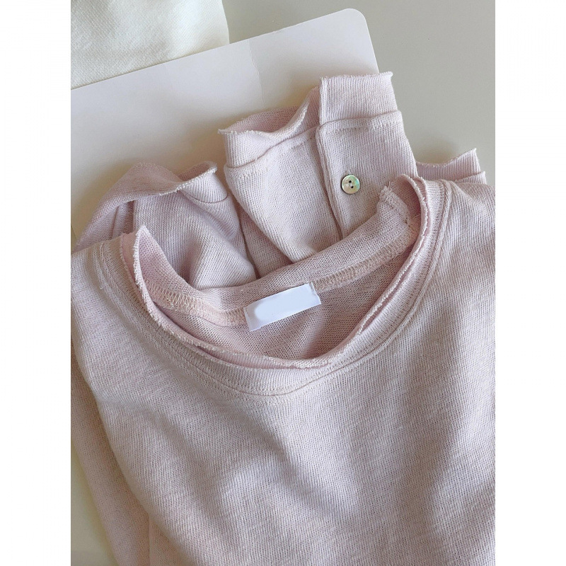 韓品2023秋装newフワフワの丸い襟の天糸の純色の薄い長袖のマスクのtシャツの女性は外に着ます。