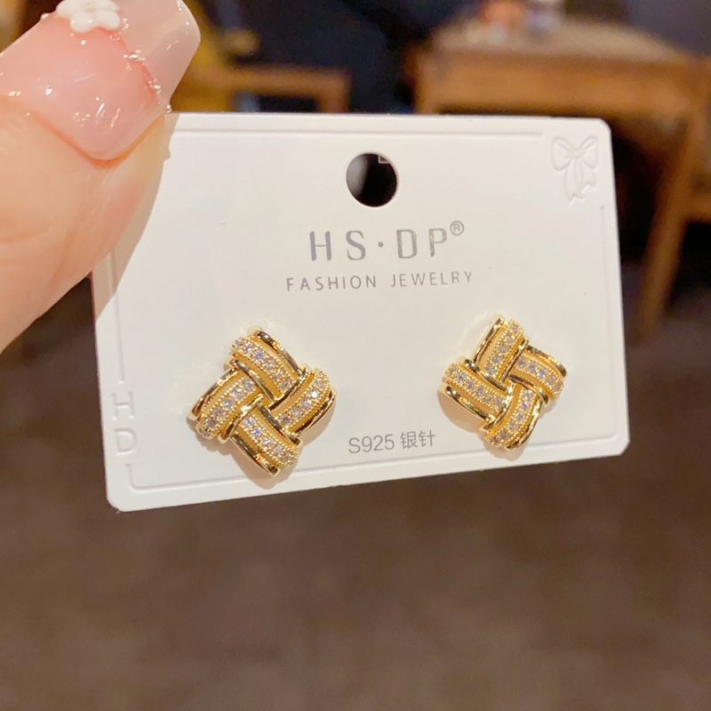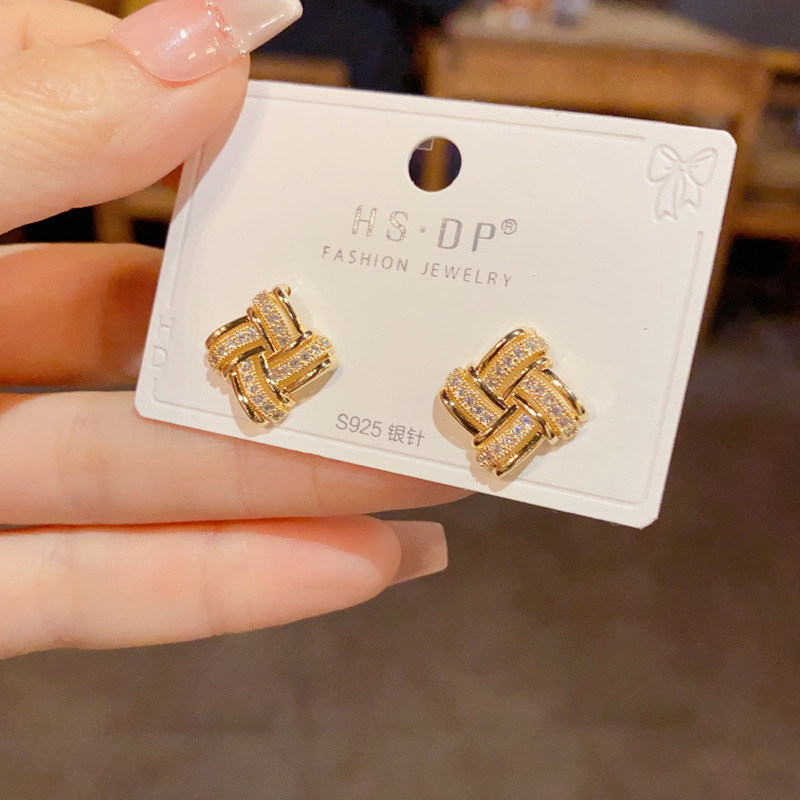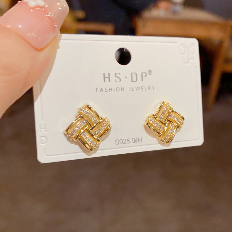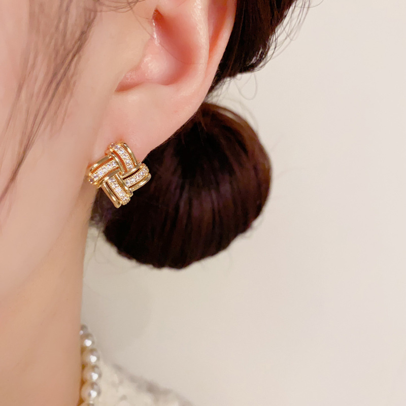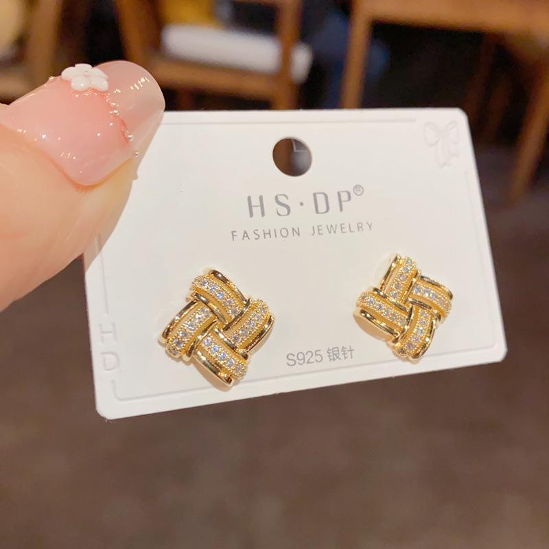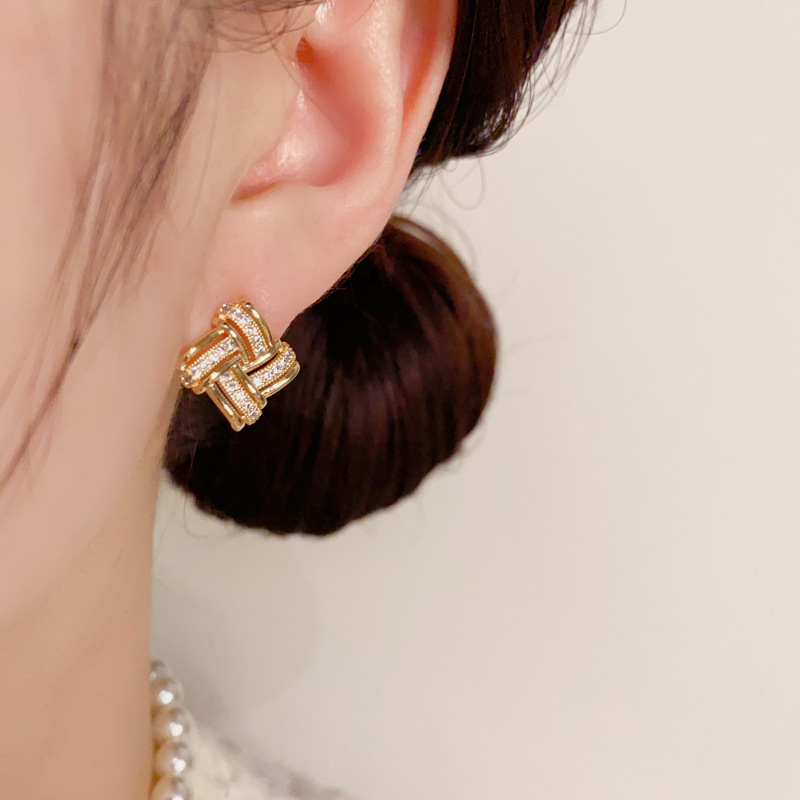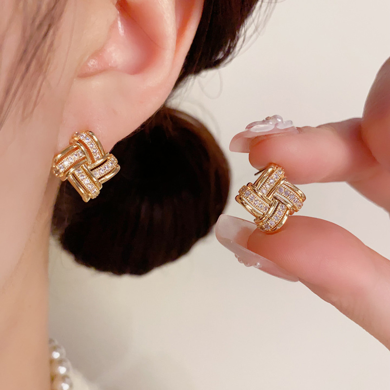 日韓の気質のファッションの二重の透かし彫りのジルコンの輪の耳のボタンは精巧で小さくて、デザイン感のイヤリングの卸売りになります。
