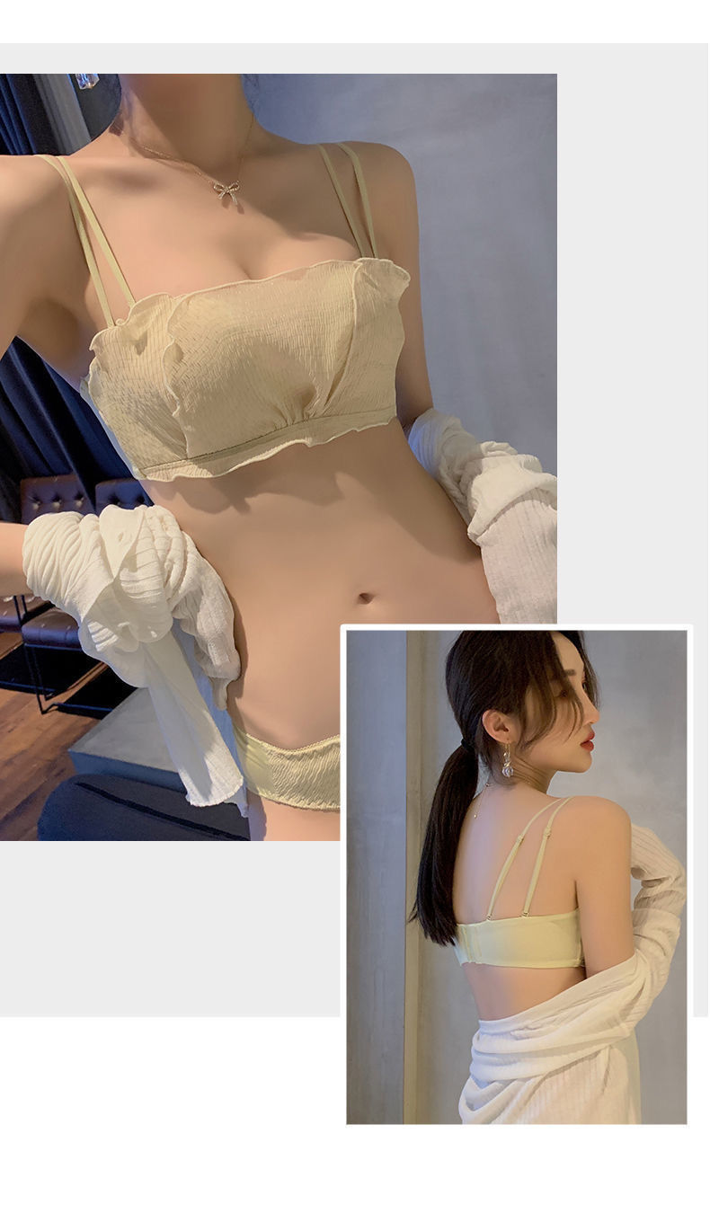 胸を拭く下着の女性の肩ひもの小さい胸は集まって支えていません。