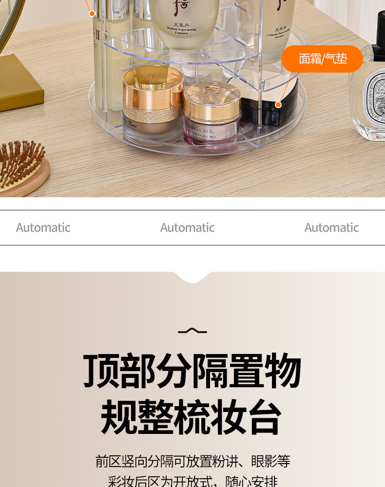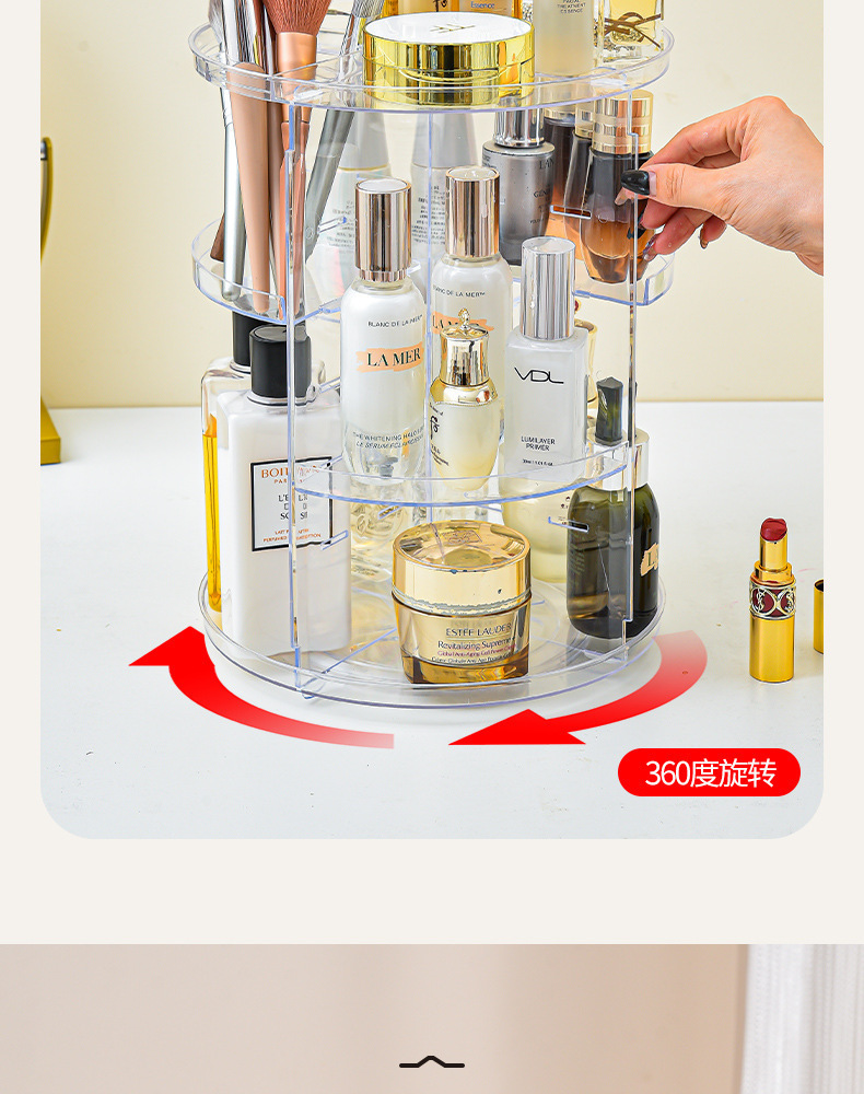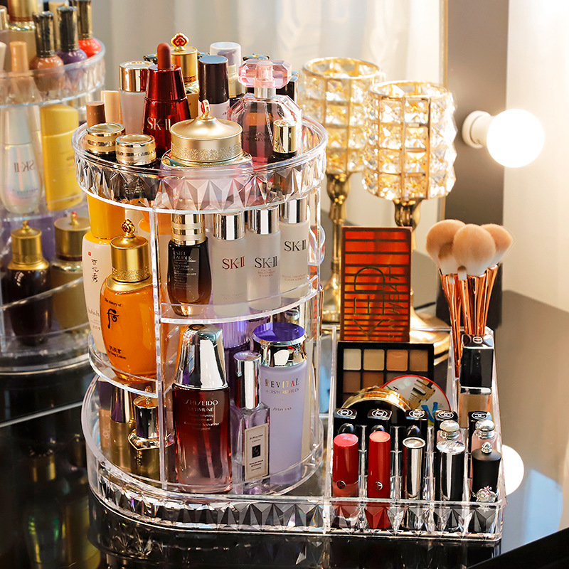化粧品収納ボックス、ハイエンドデスクトップ、大容量、軽くて豪華な回転可能な化粧品ラック、透明なデスクトップ収納ボックス