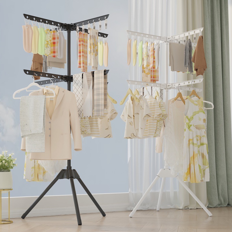 多功能毛巾架阳台晒衣架简易卧室收纳架子落地式可折叠多层晾衣架