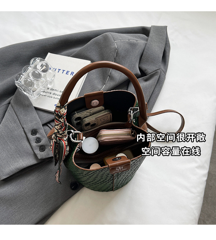 2025 インターネットセレブ新通勤レトロバッグレディースハンドバッグファッショナブルで多用途なショルダーバッグ織りバケットバッグニッチ