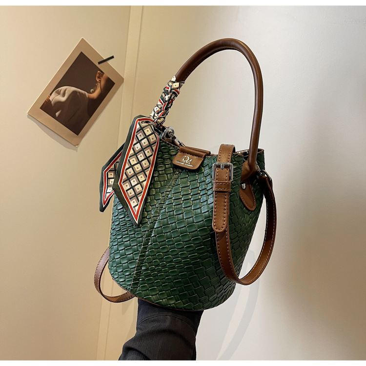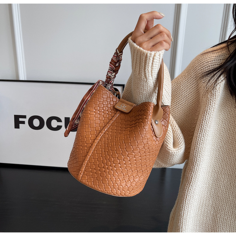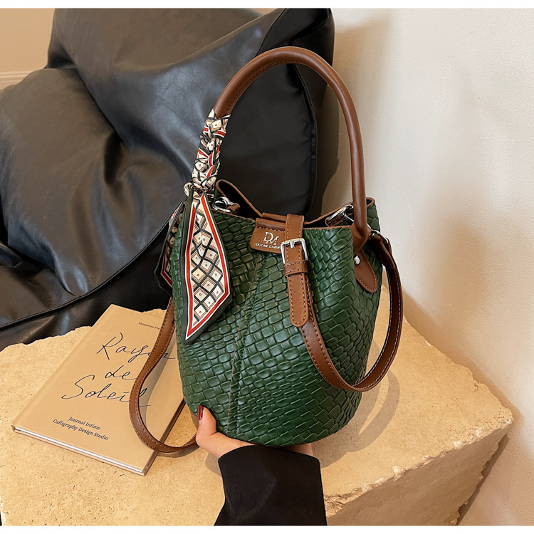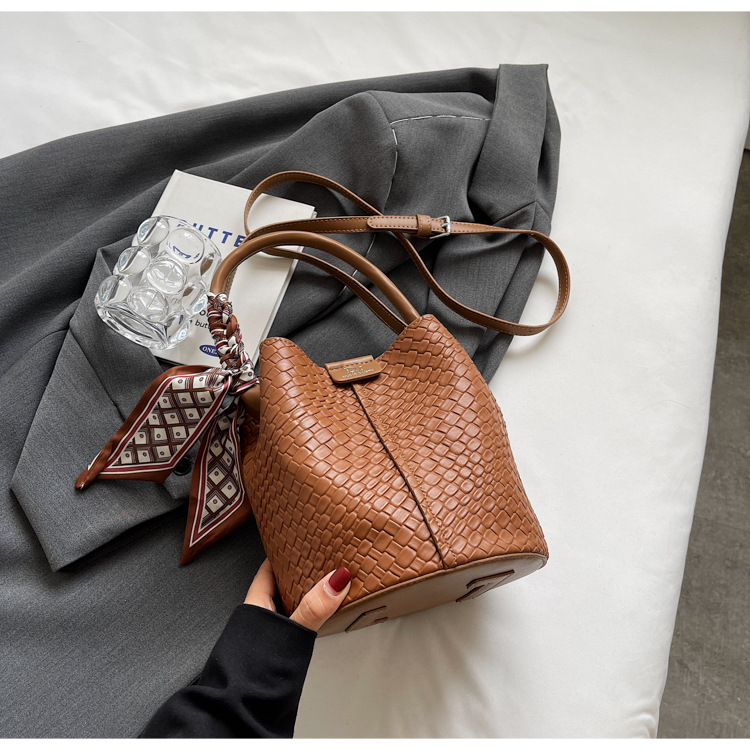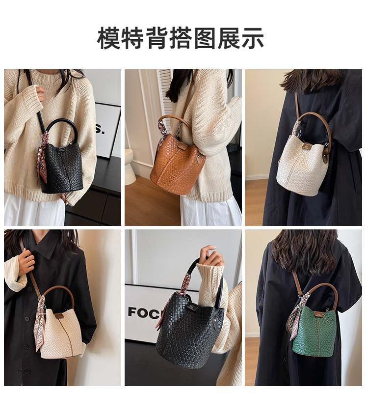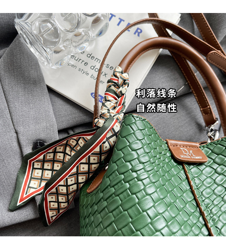 2025年トレンドのレトロ通勤バッグ レディースハンドバッグ 多用途ショルダーバッグ 編み込みバケットバッグ 個性的な通勤バッグ 多用途