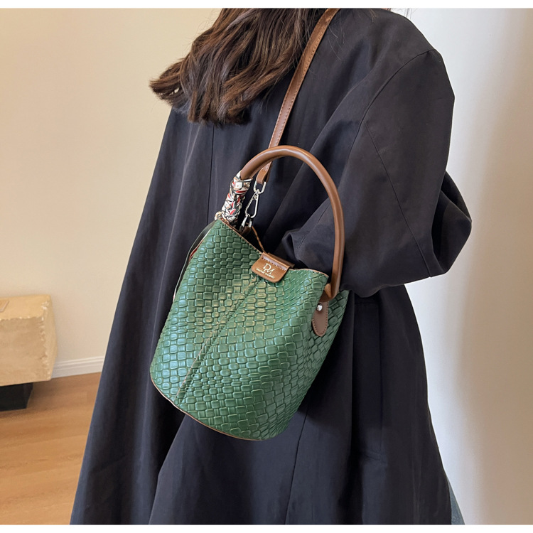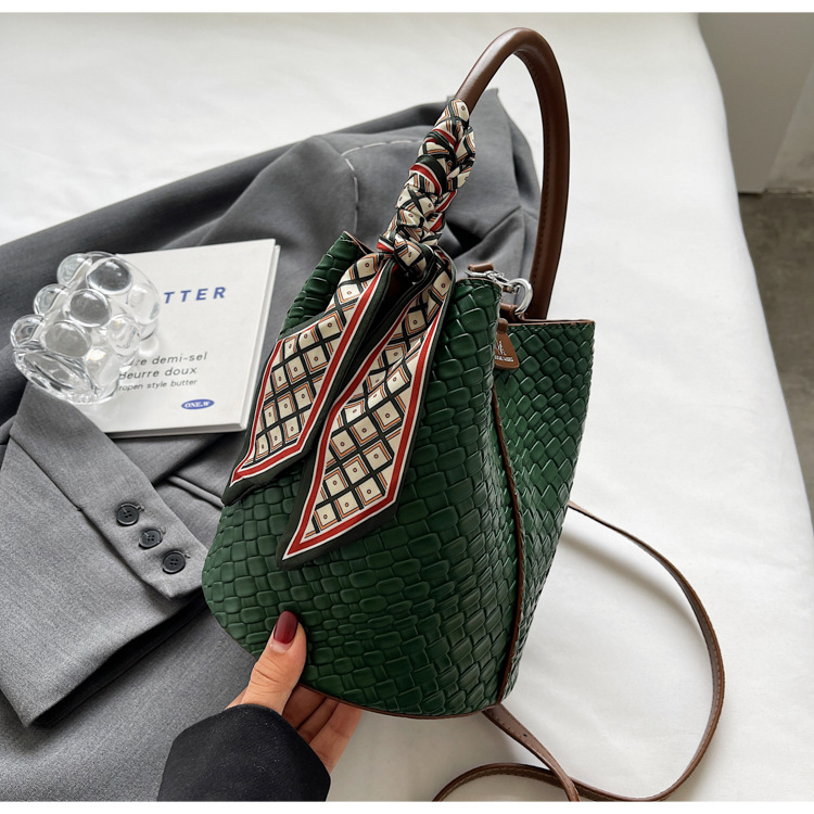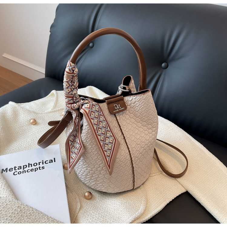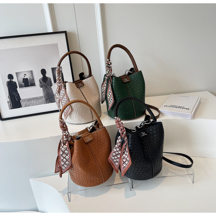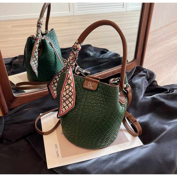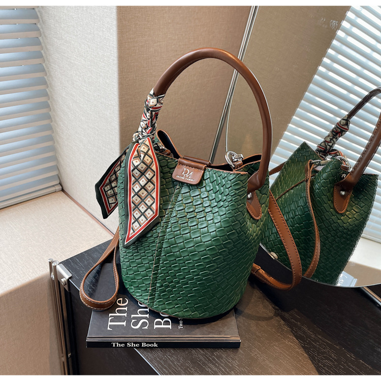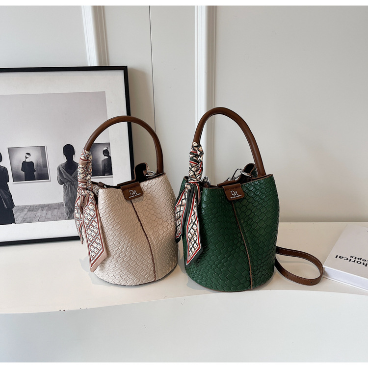 2025年トレンドのレトロ通勤バッグ レディースハンドバッグ 多用途ショルダーバッグ 編み込みバケットバッグ 個性的な通勤バッグ 多用途