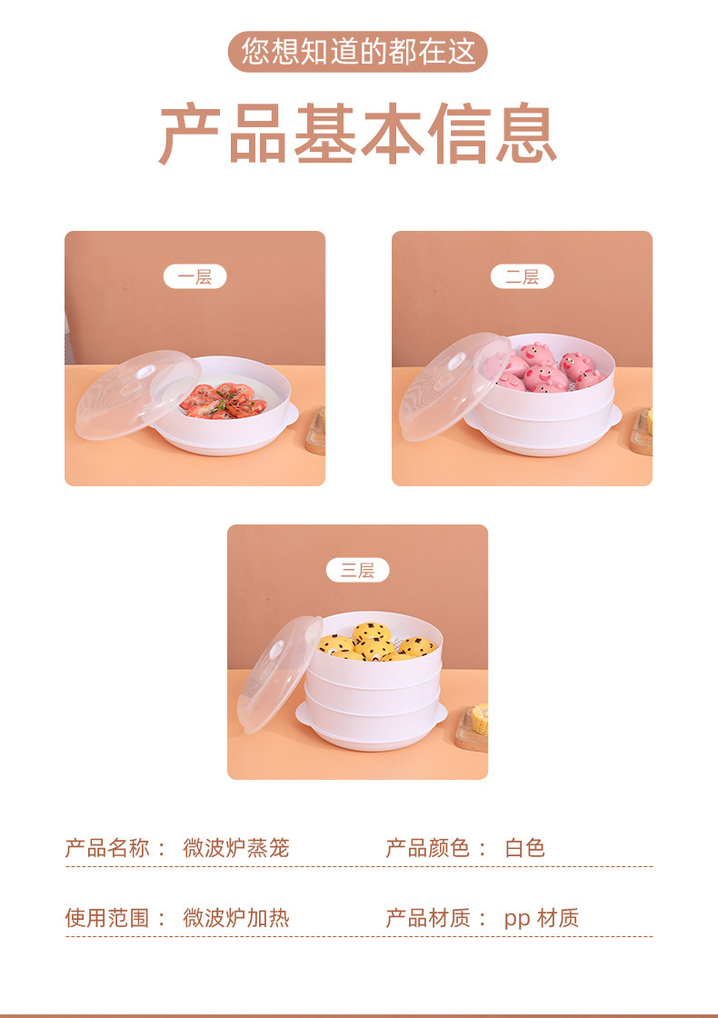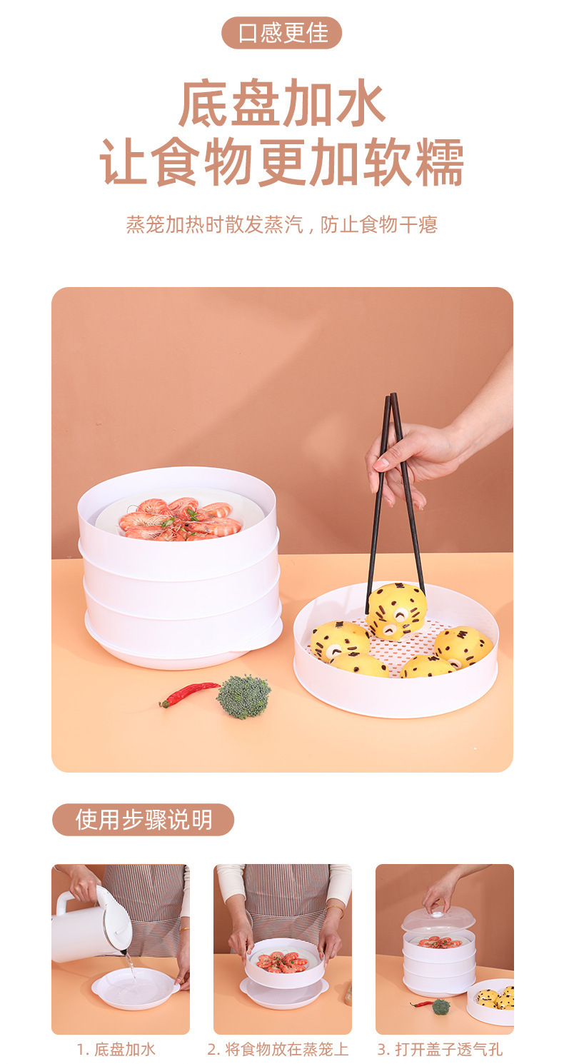 微波炉多层塑料蒸笼加热馒头包子蒸屉家用蒸格大容量蒸盘高温蒸架