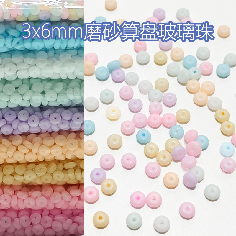 玻璃磨砂圆形珠6X3MM车轮珠算盘珠串珠哑光念珠实色亚光饰品配件