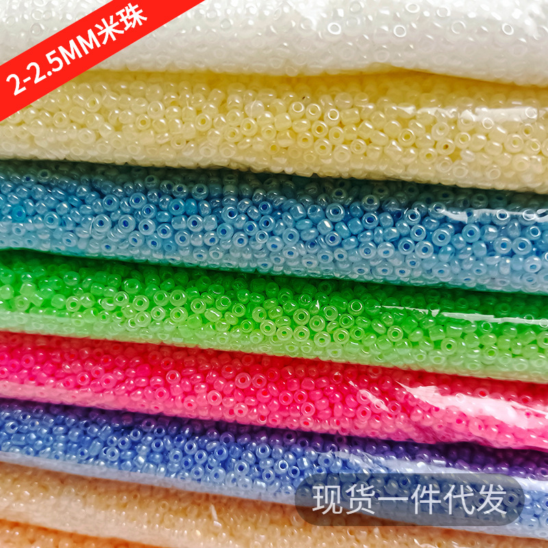 2MMクリームガラス米ビーズ中穴十字刺繍小米ビーズDIYカラー12色工場販売卸売り直播ビーズ