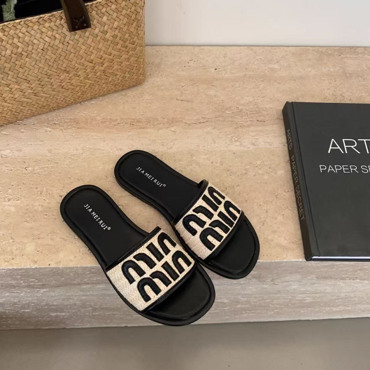 2025越南时尚百搭爆款夏季编织法式小香风日常外穿沙滩平底一字拖