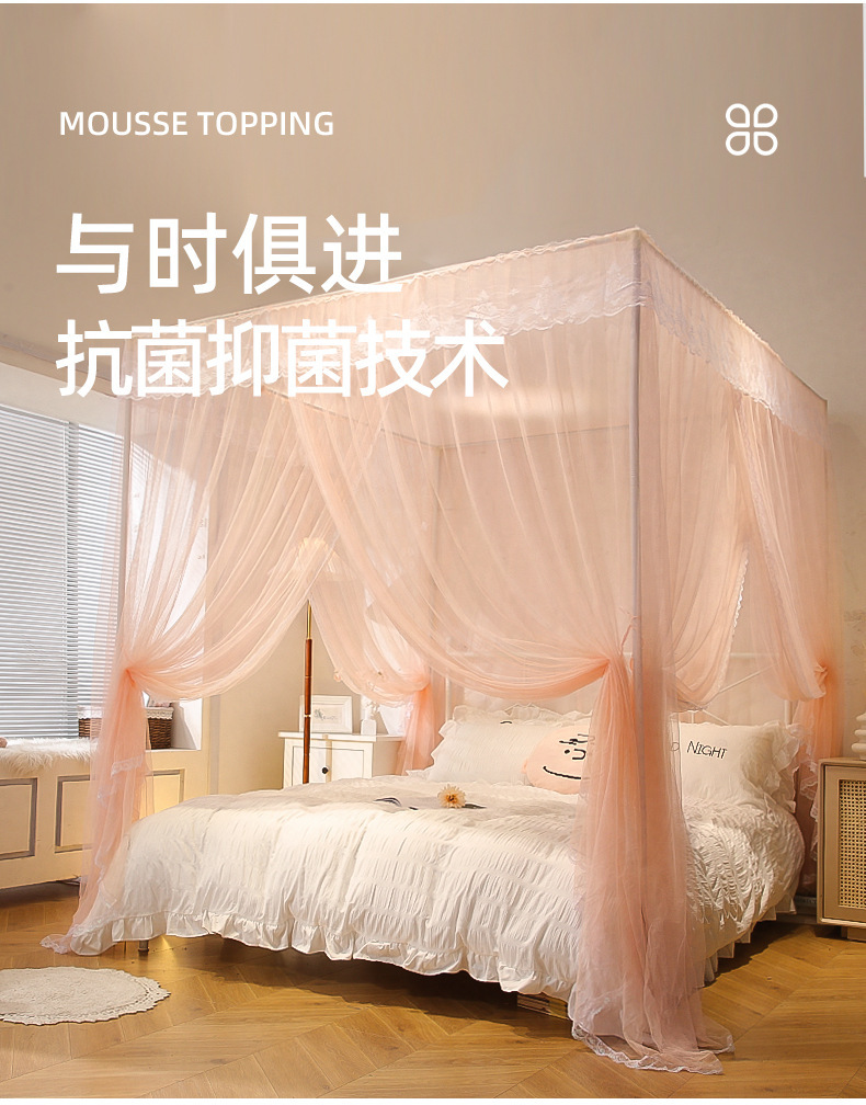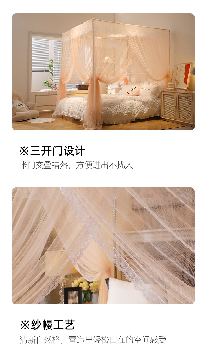 三开门落地蚊帐家用2025新款卧室免安装支架杆加粗加厚宫廷风