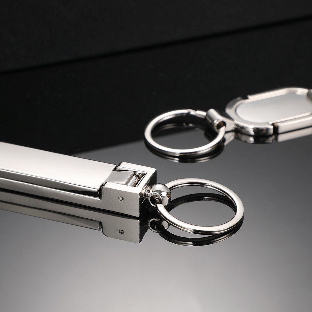 国境を越えて人気の丸型メタル回転キーホルダー、プロモーション用PUレザー回転式、ロゴ入りクリエイティブ
