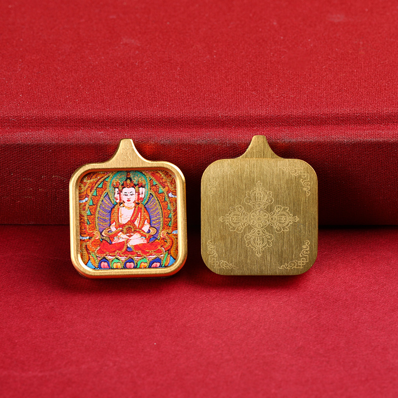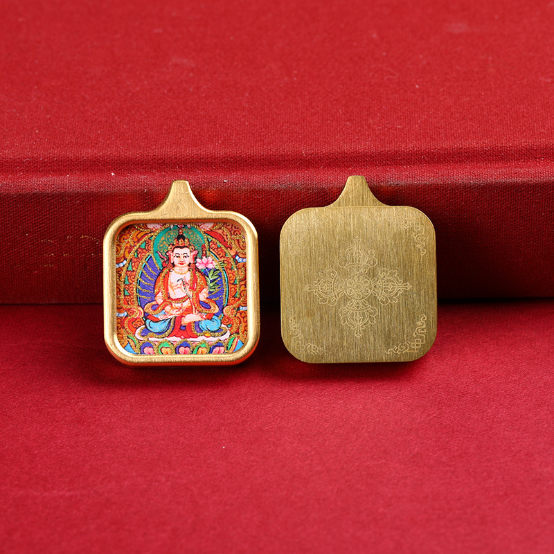 唐カードペンダントチベット手描き描金圧延機ラム前世今生黄財神観音小唐カードネックレスペンダント