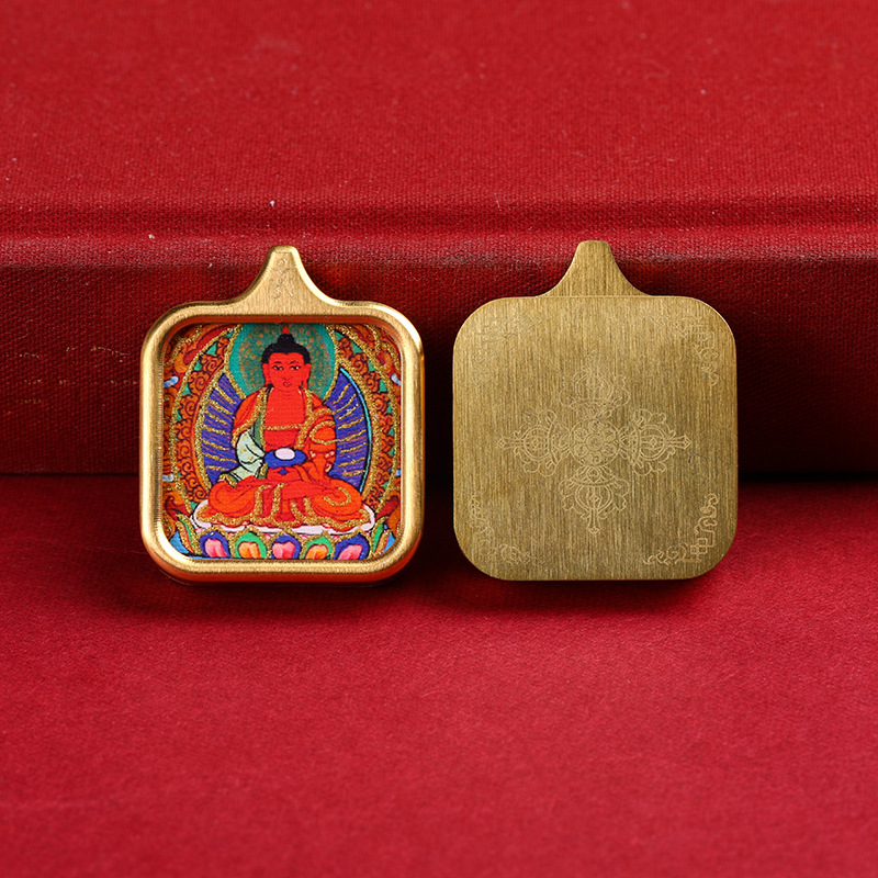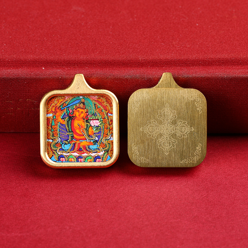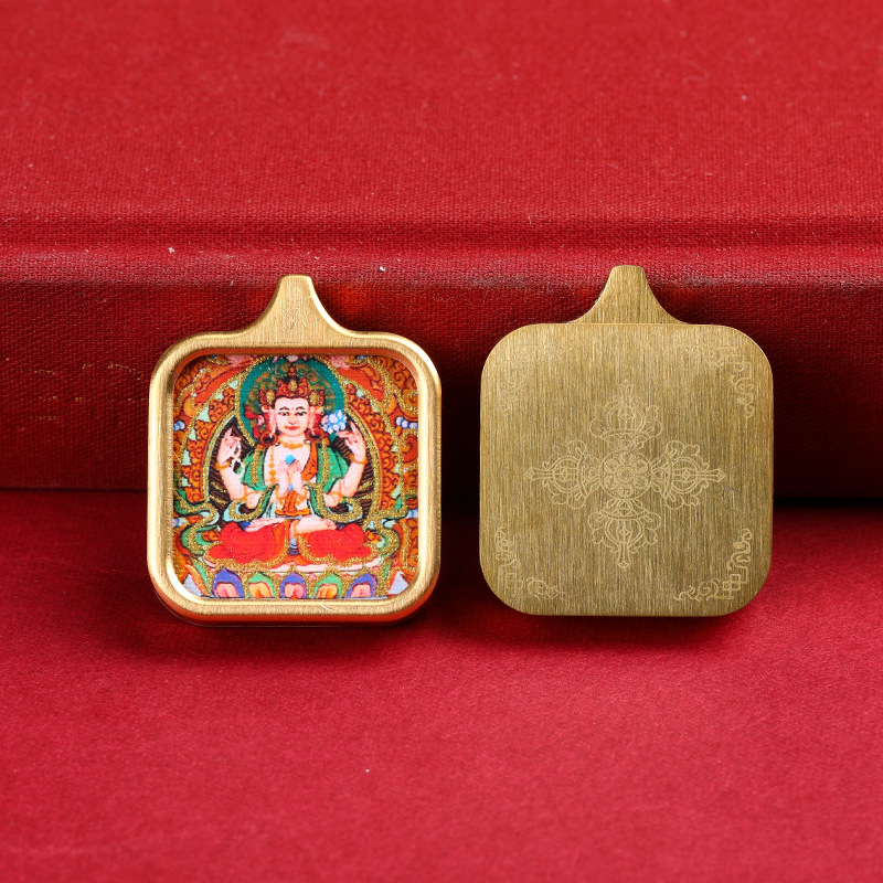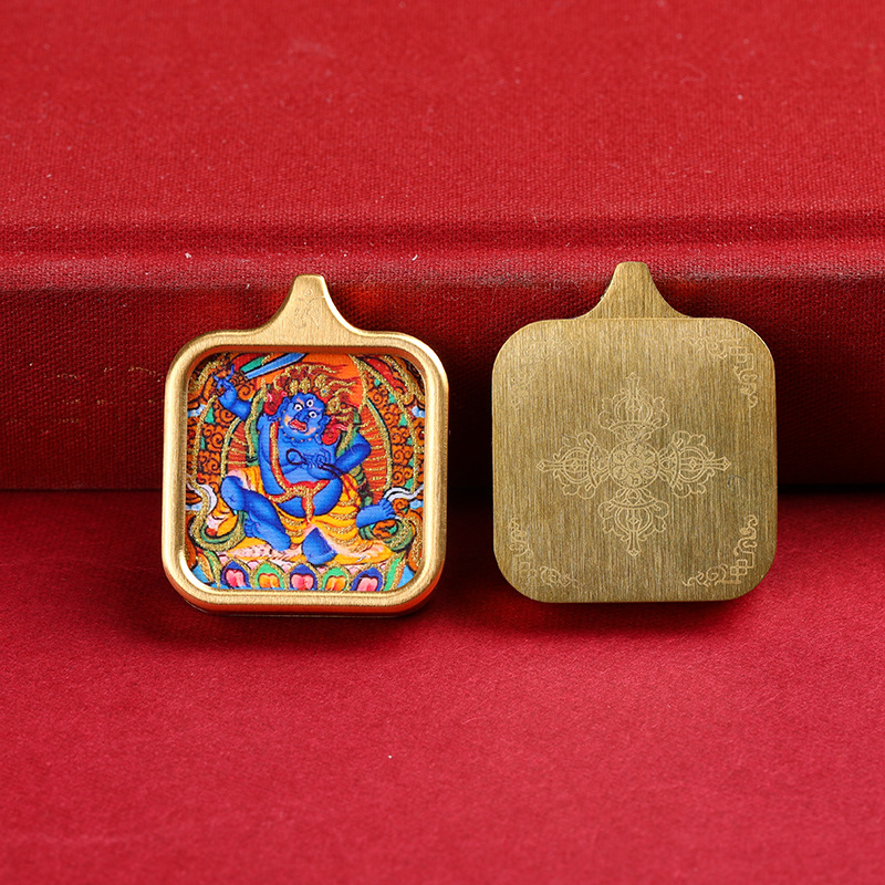 八大守護神真鍮唐カードペンダント手描き描金黄財神ザキラム男女四角いネックレスプレゼント