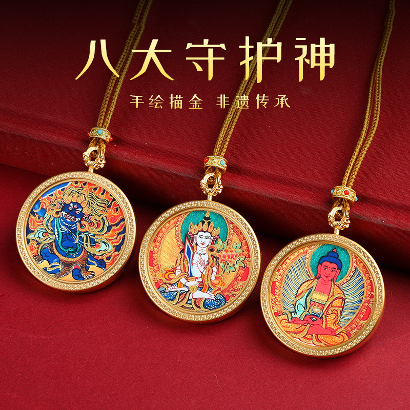 手描き描金新型チベット式円形五爺九尾狐圧延機ラム八大守護神唐カードネックレスペンダント