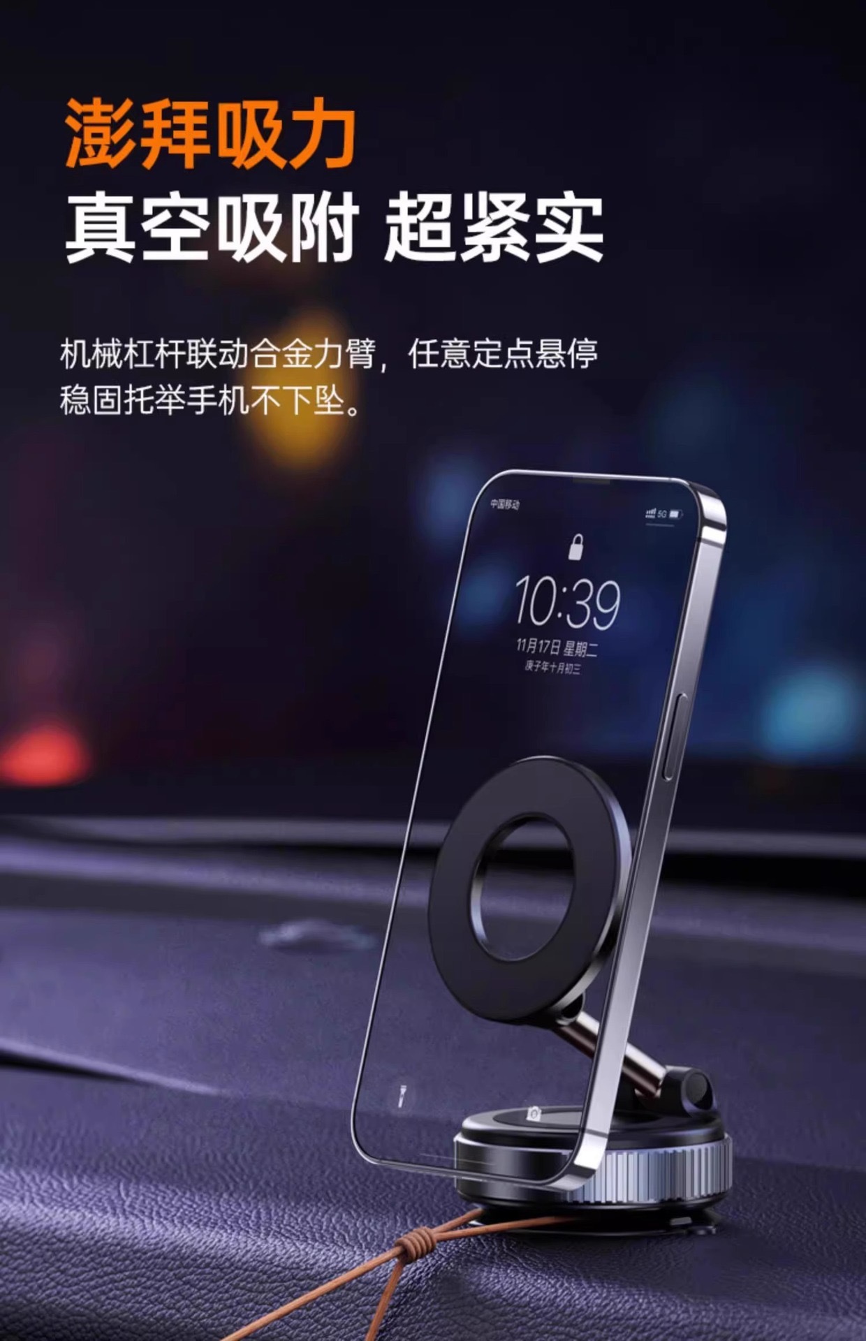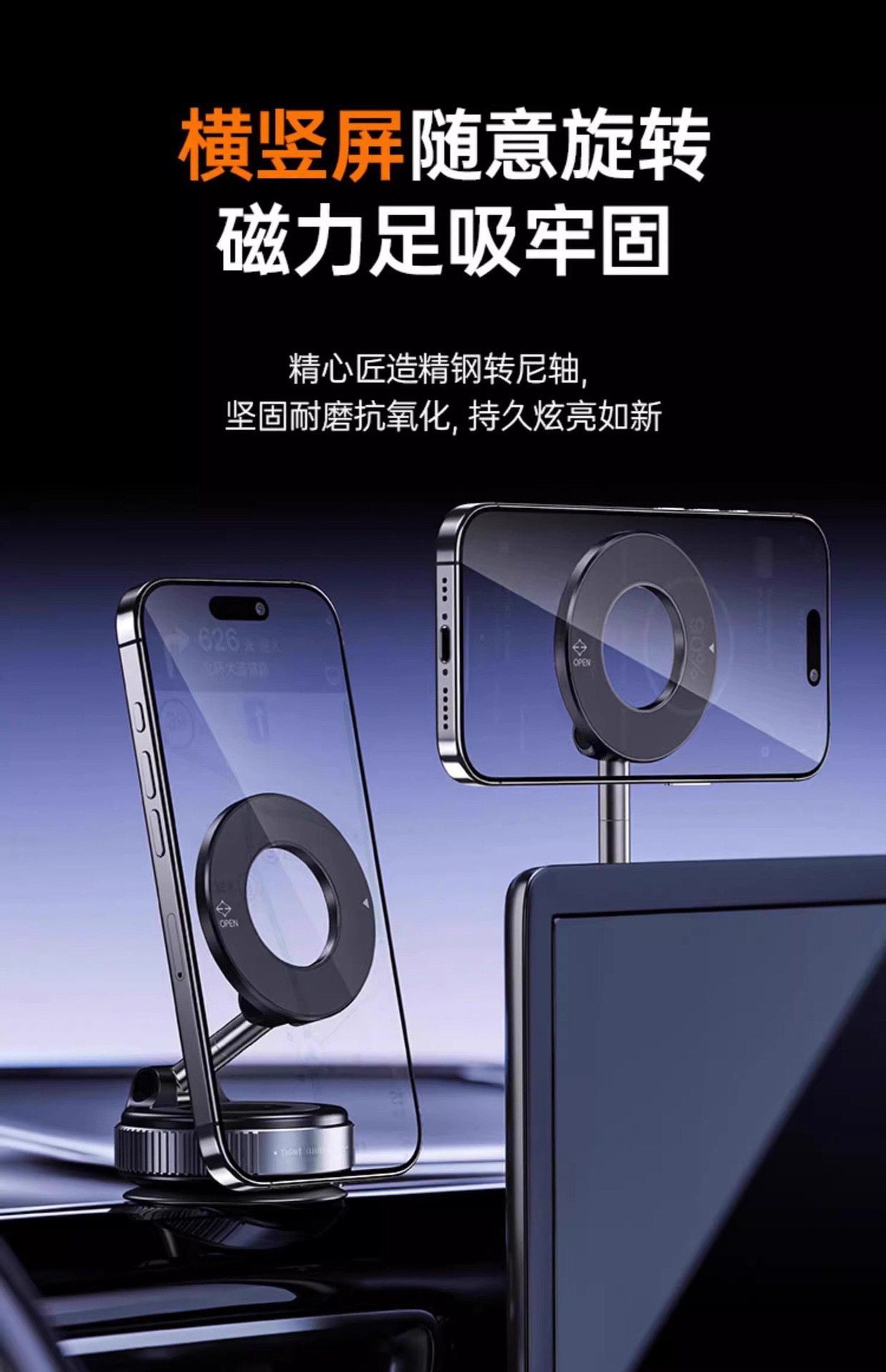 磁気車の携帯電話ホルダー真空吸盤強力な磁気センターコンソールナビゲーションホルダーユニバーサル回転折りたたみ多機能