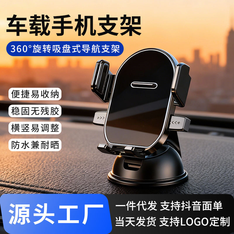 跨境车载手机支架汽车仪表台不挡出风口360度旋转吸盘式导航支架