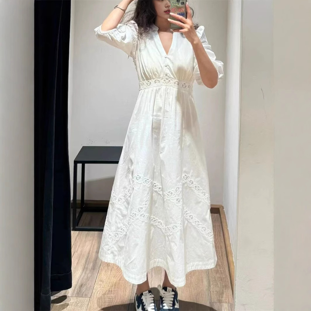 法式优雅2025春夏新款假两件马甲拼接淡黄色中长款无袖连衣裙