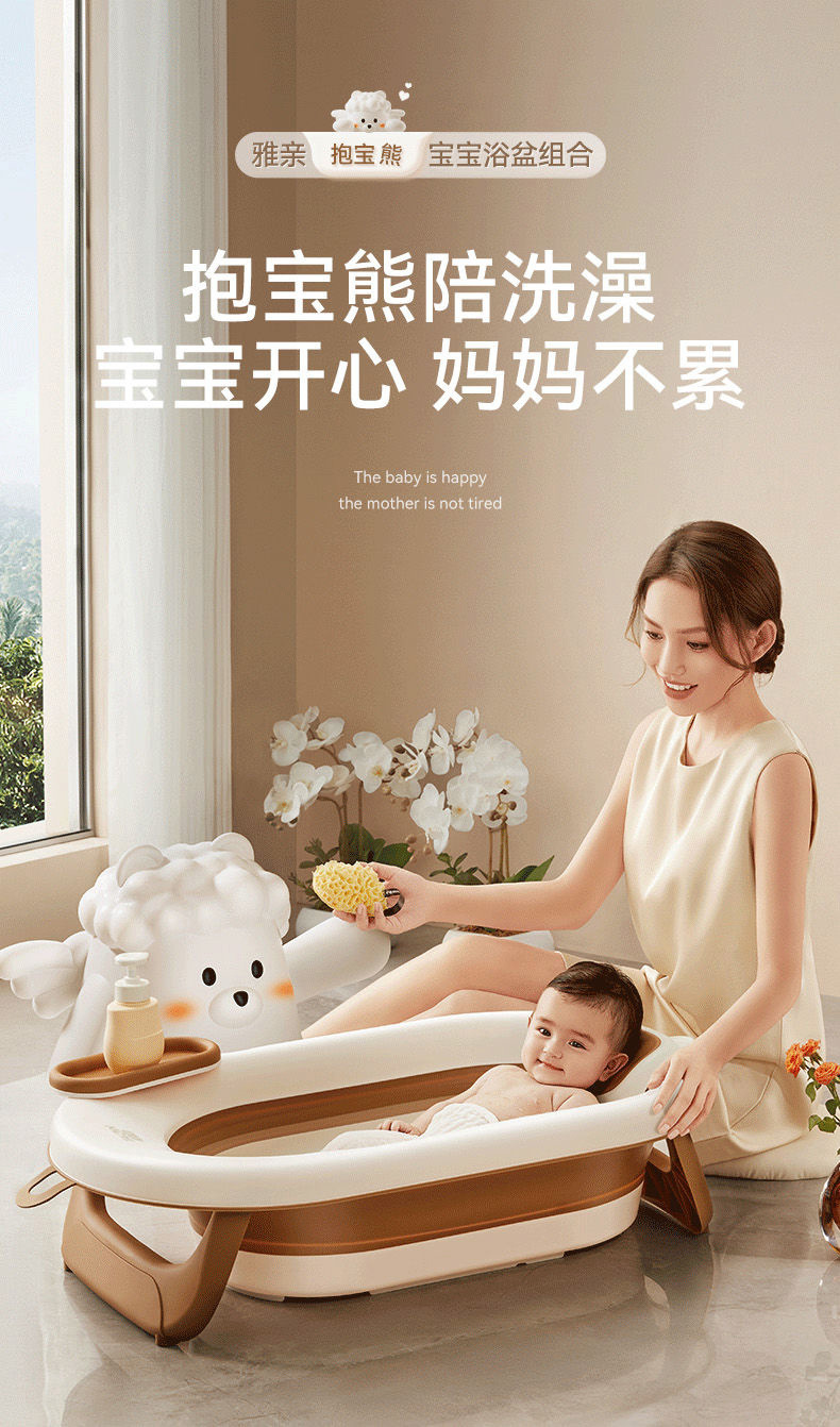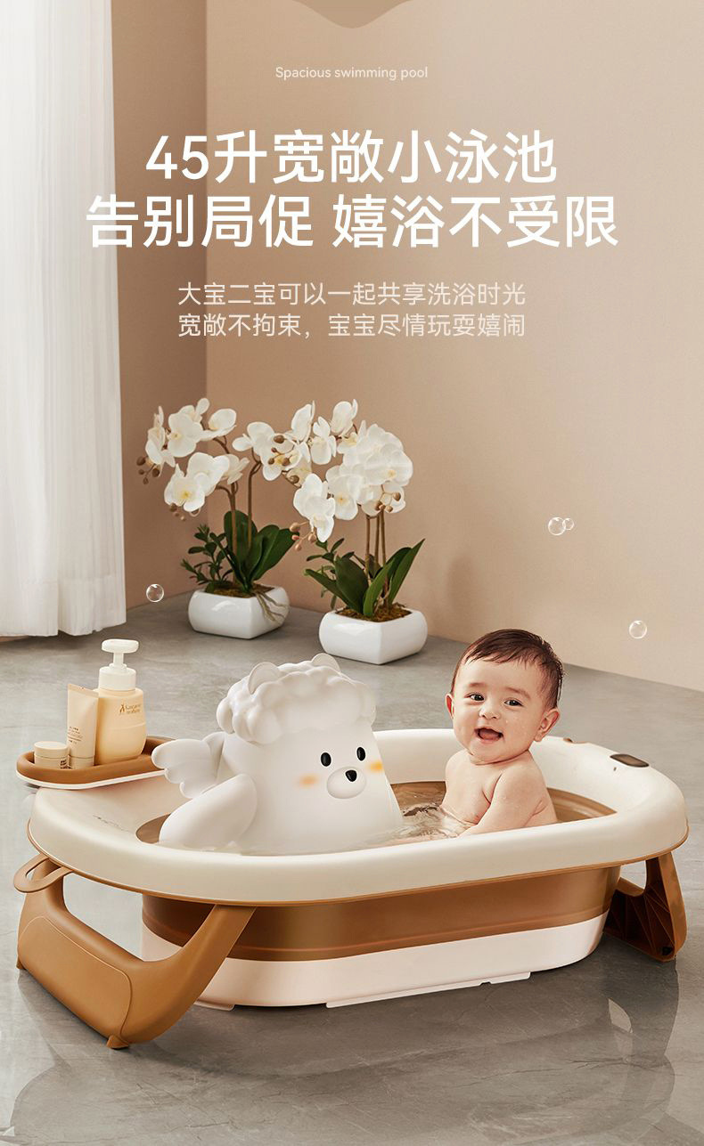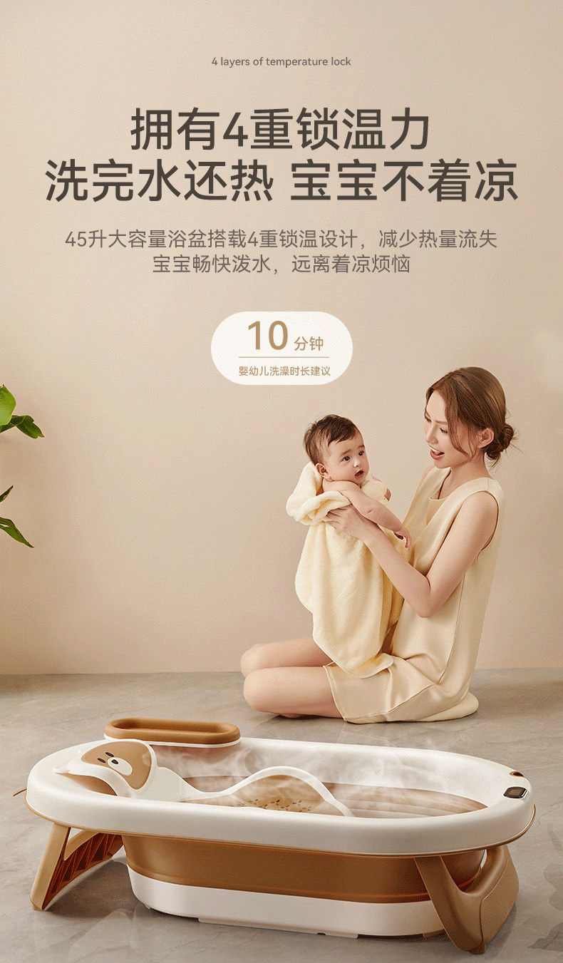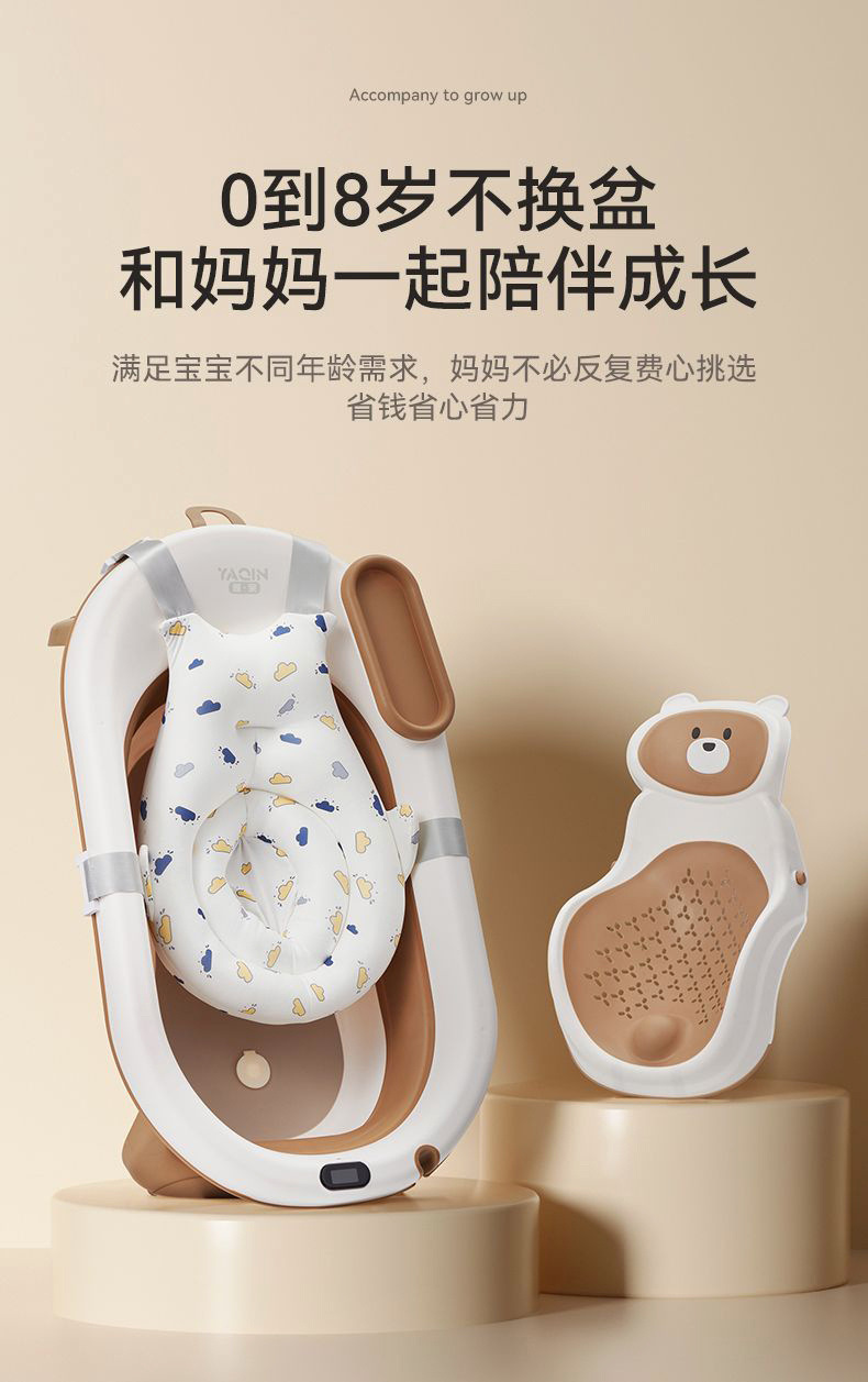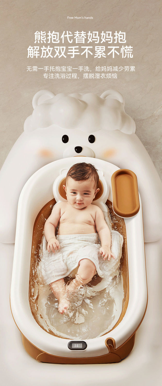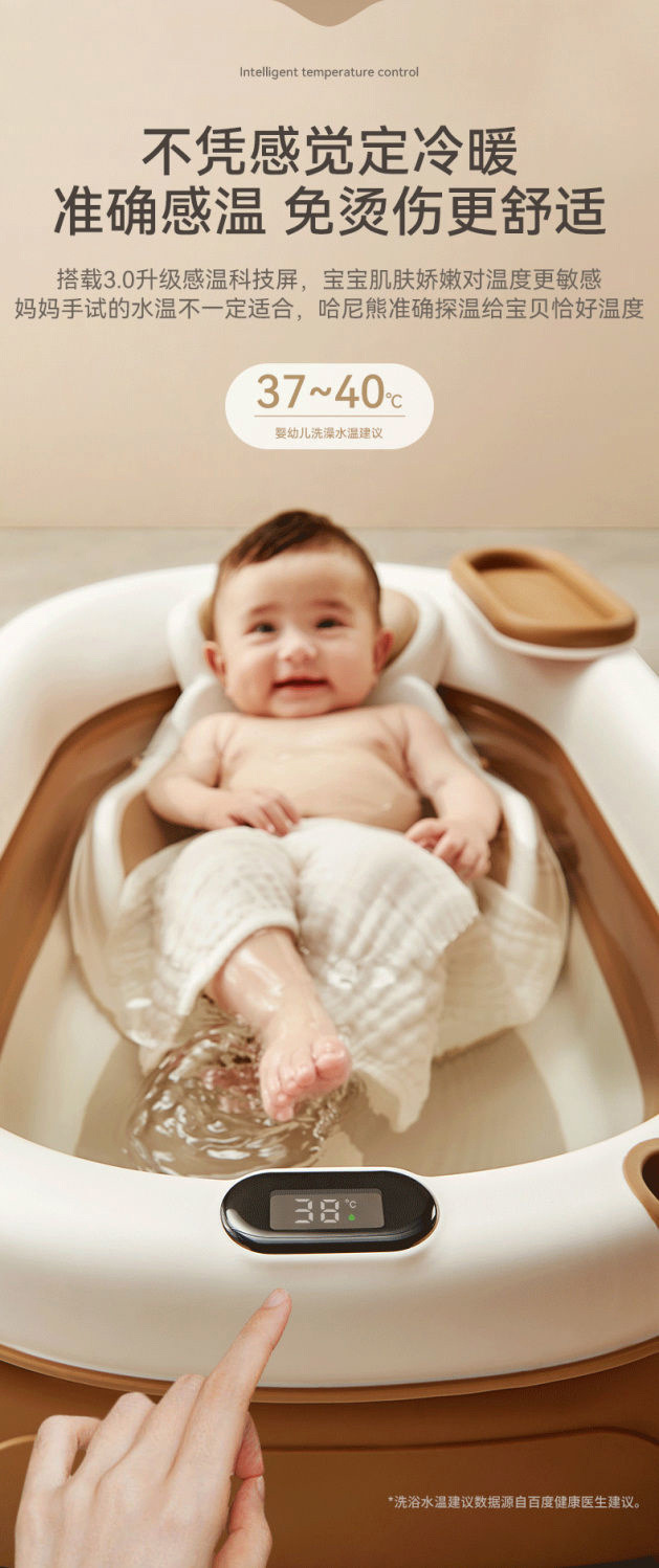 Yaqin ベビーバスタブ ベビーバスタブ インテリジェント温度感知 座ったり横になったり 折りたたみ式 大型バスタブ 子供用製品