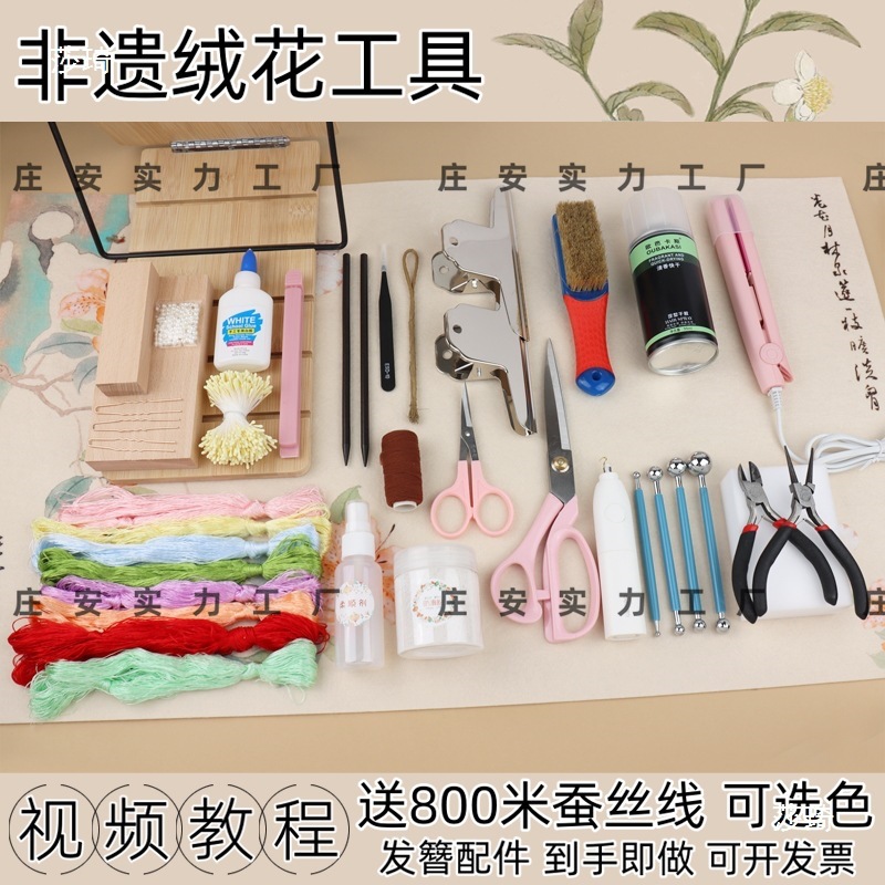 非遗绒花DIY材料工具新手头饰发饰簪子胸针DIY饰品配件免劈丝头饰