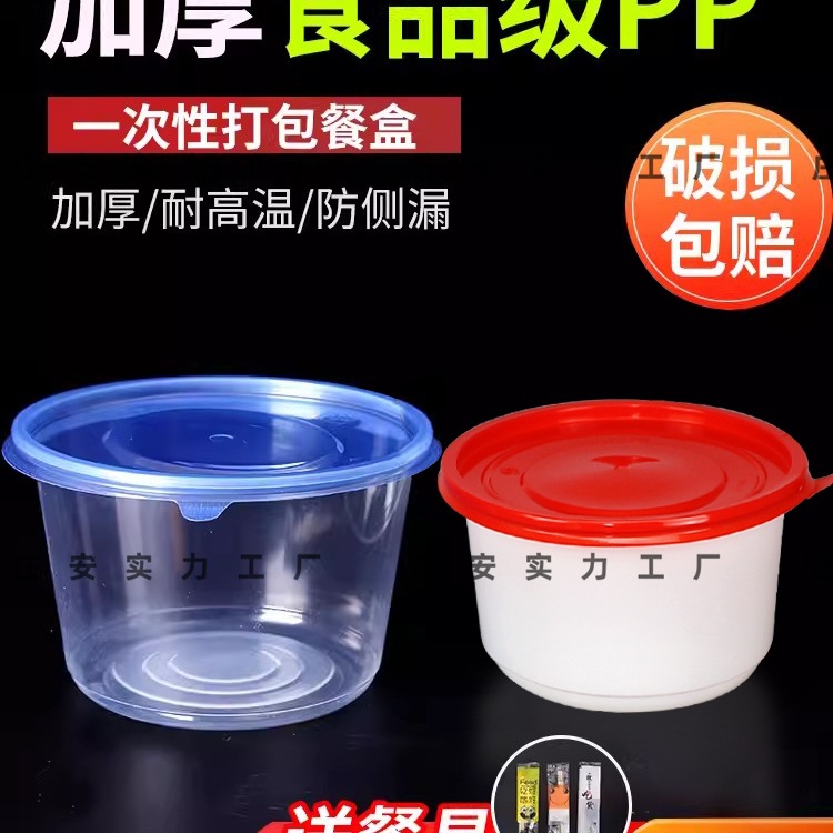 加厚耐高温一次性食品级可微波炉餐盒塑料碗汤饭盒带盖打包盒圆形