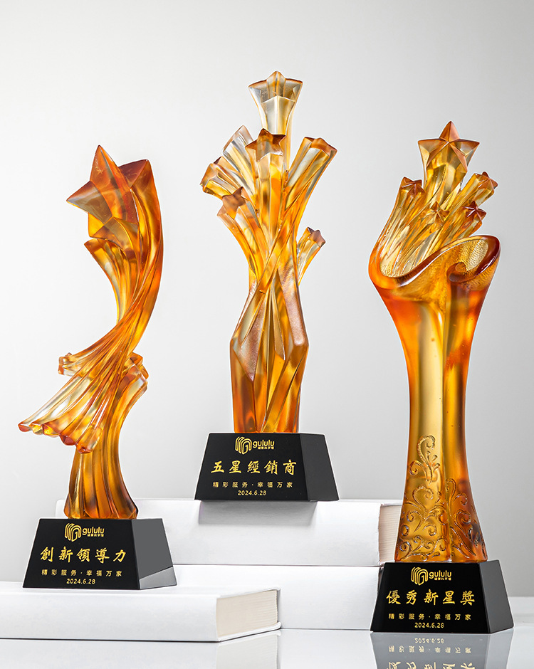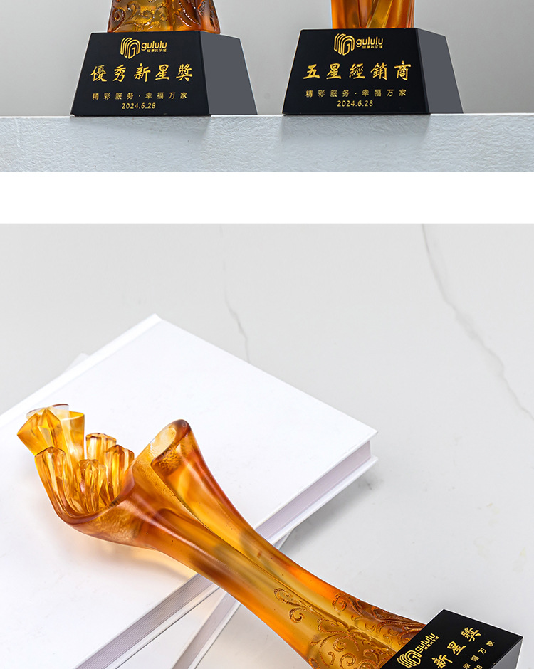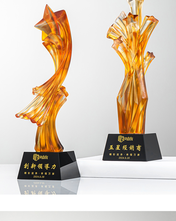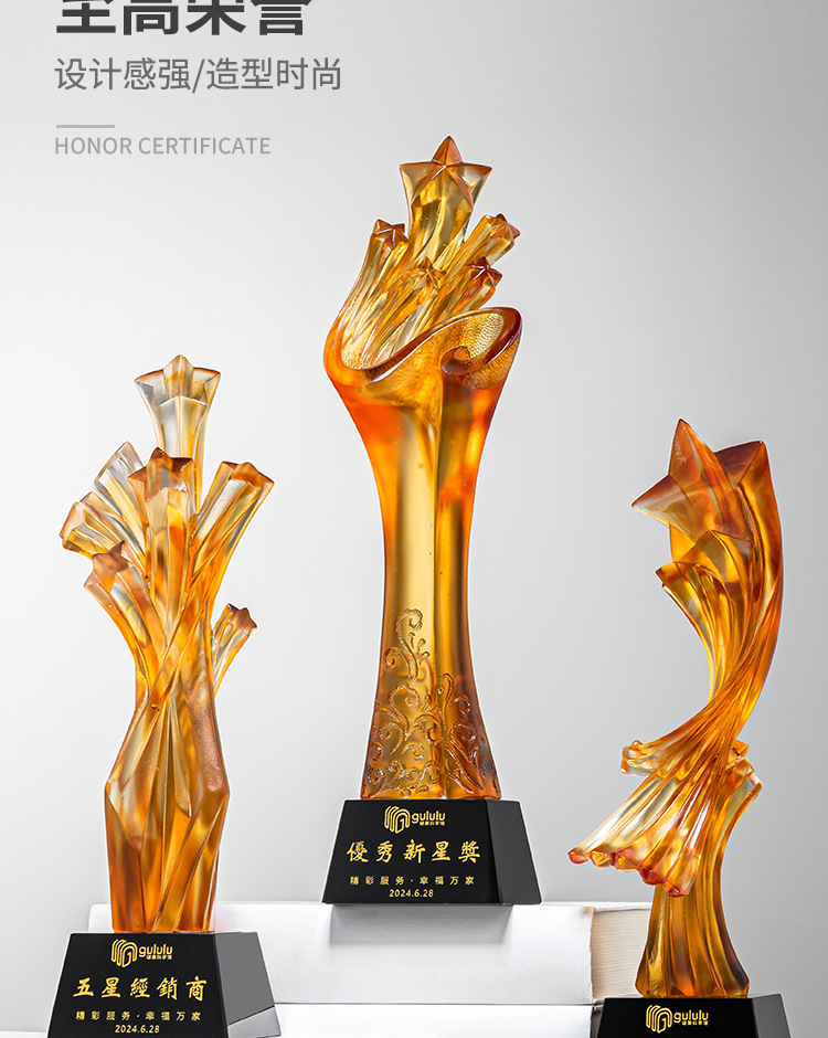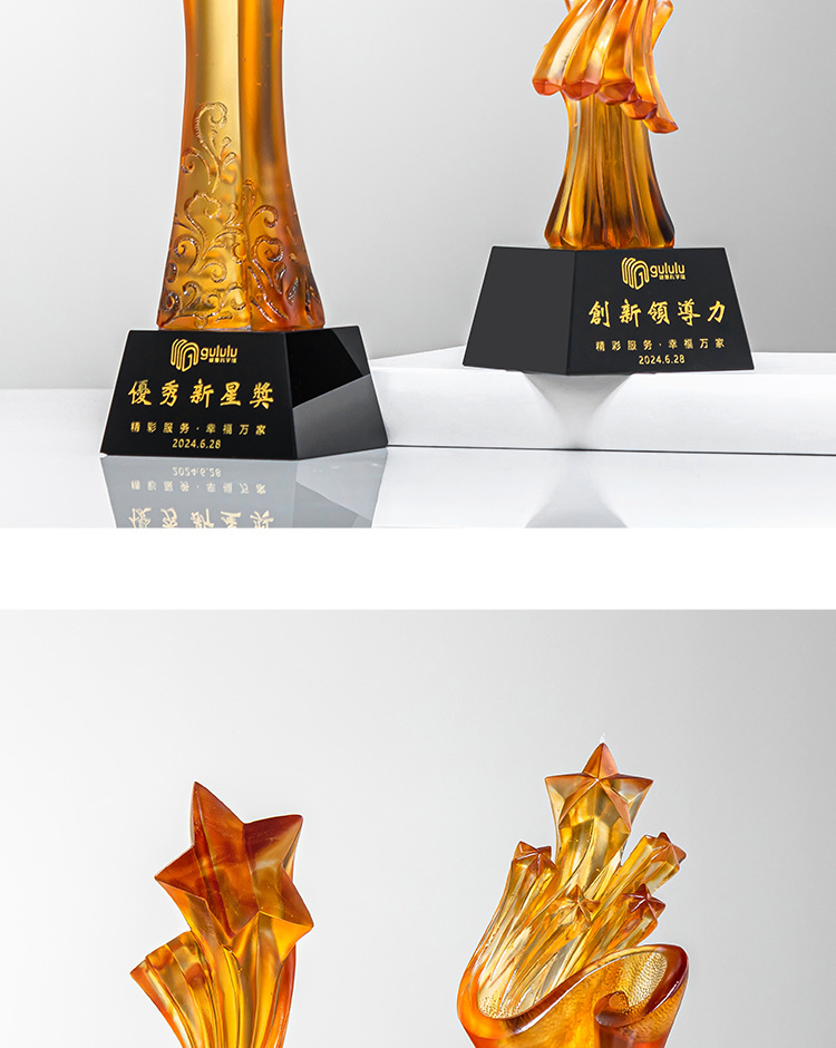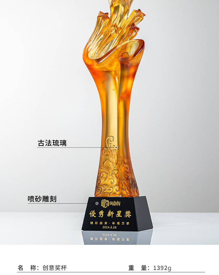 優秀な従業員を表彰するためのカスタマイズされたクリエイティブなガラスクリスタルトロフィー、会社年次総会の名誉賞、記念彫刻コンテスト