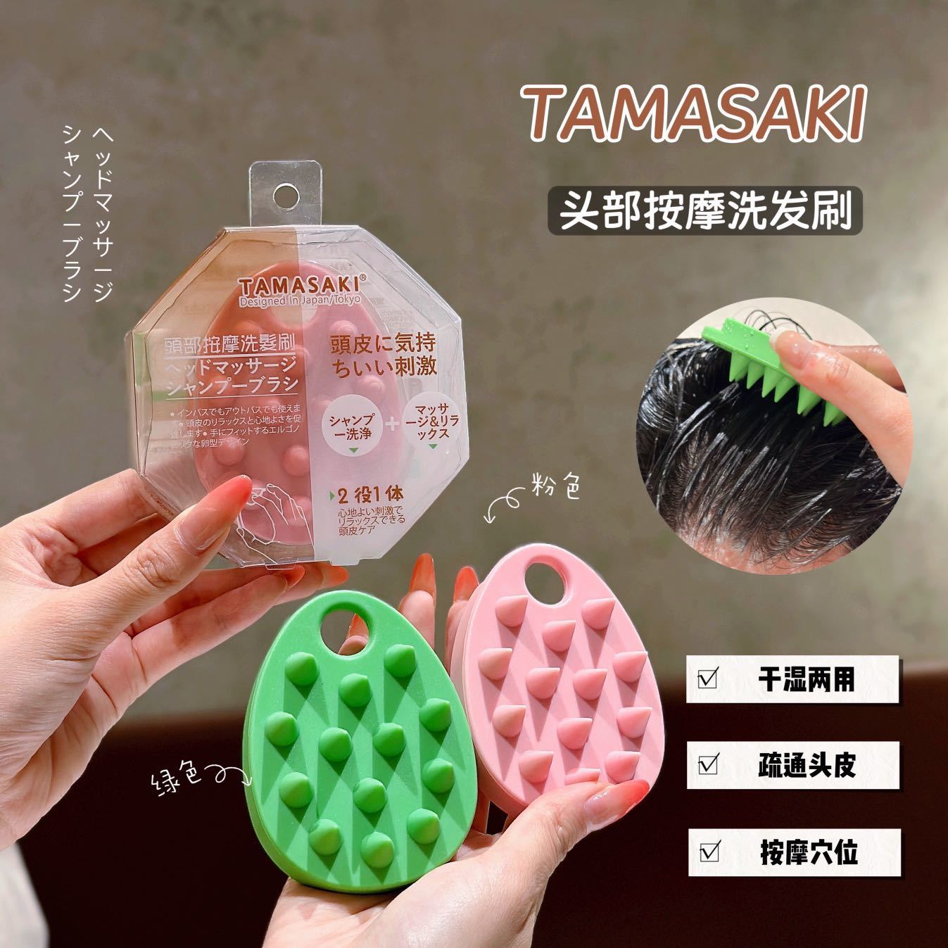 正品TAMASAKI头部按摩洗发刷洗头按摩二合一洗发梳干湿两用